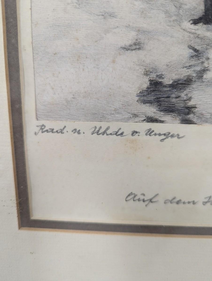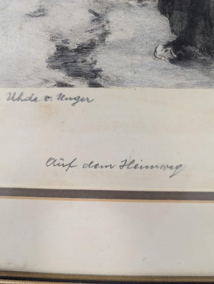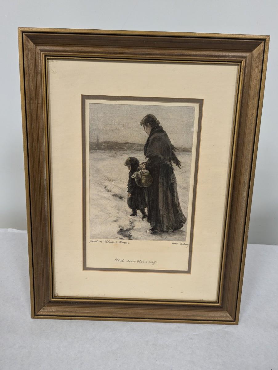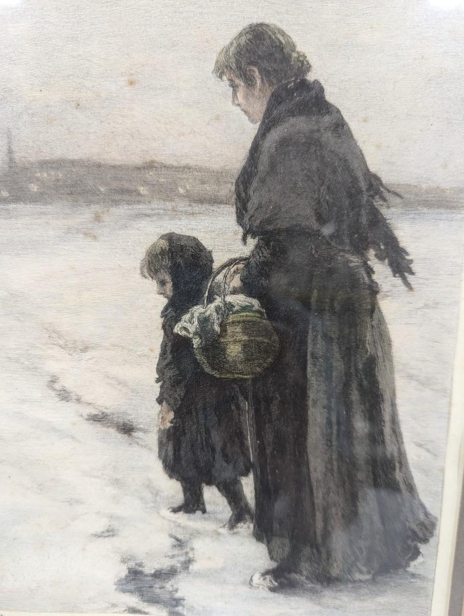 Fritz Von Hude German Mother & Child In The Snow Etching