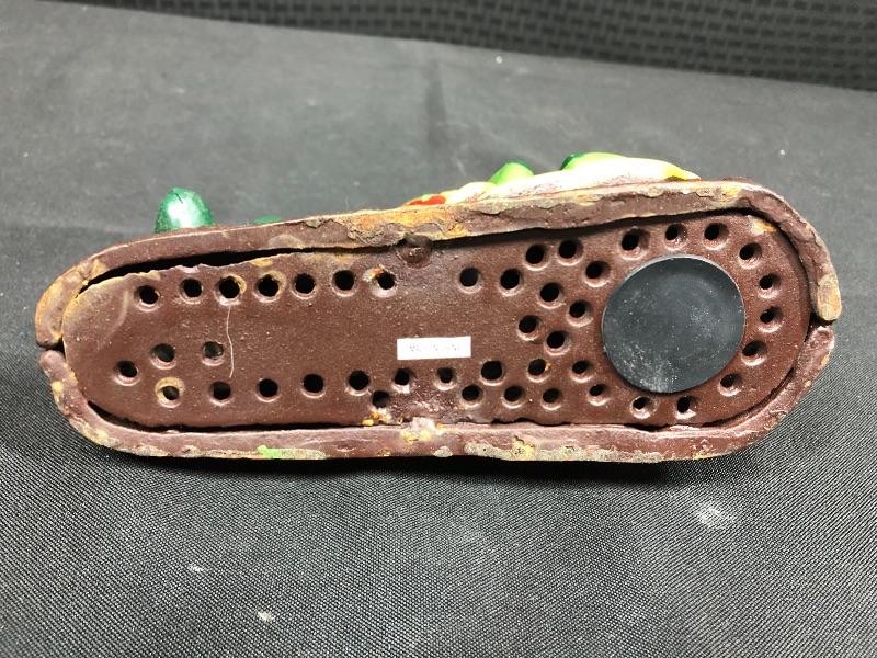 Vintage Mechanical Painted Cast Iron Frog Toad Coin Bank