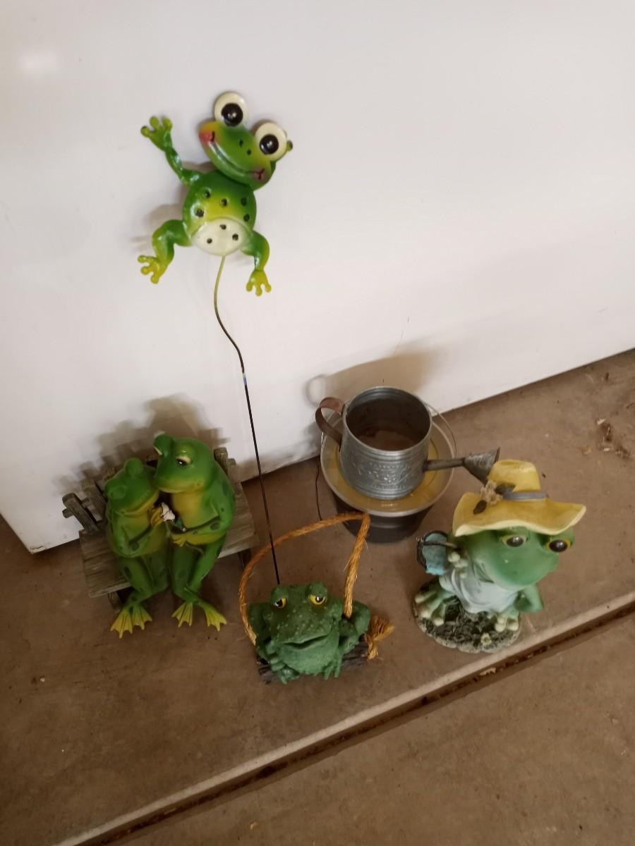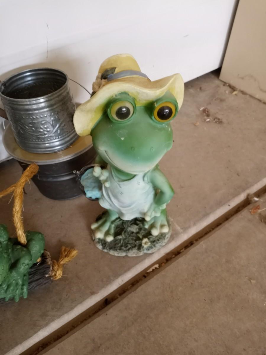 FROG FIGURINES-SMALL METAL WATERCAN AND CITRONELIA CANDLE