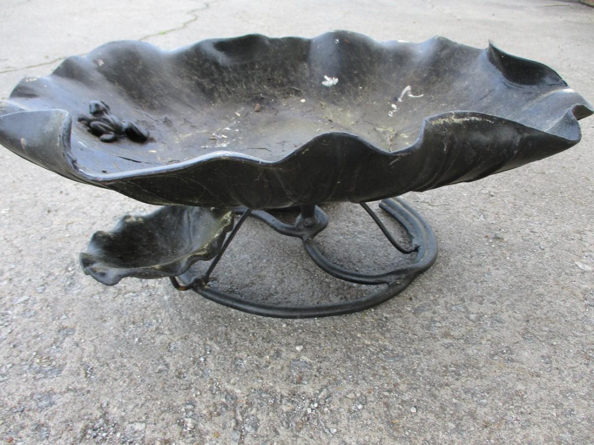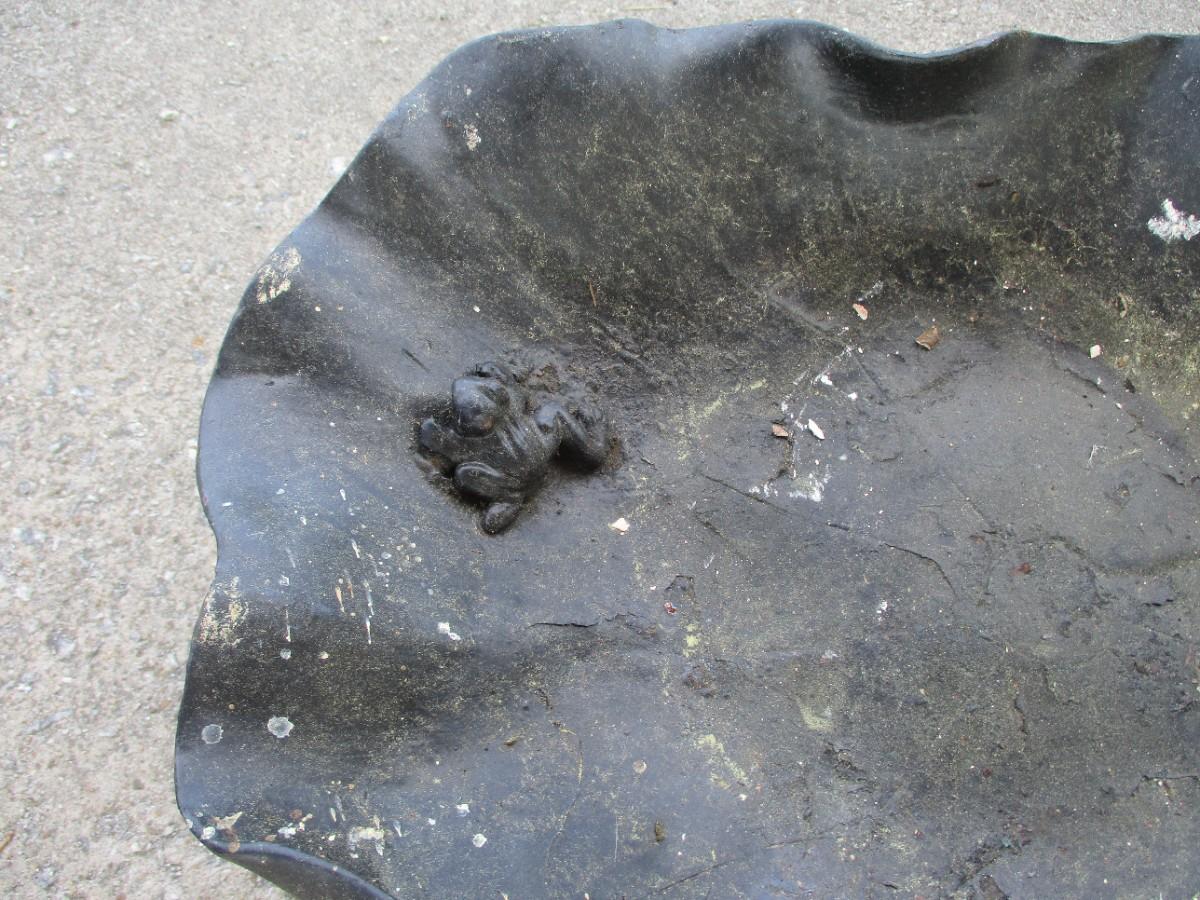 Vintage Cast Metal Art Frog & Lilly Pad Bird Bath Stand