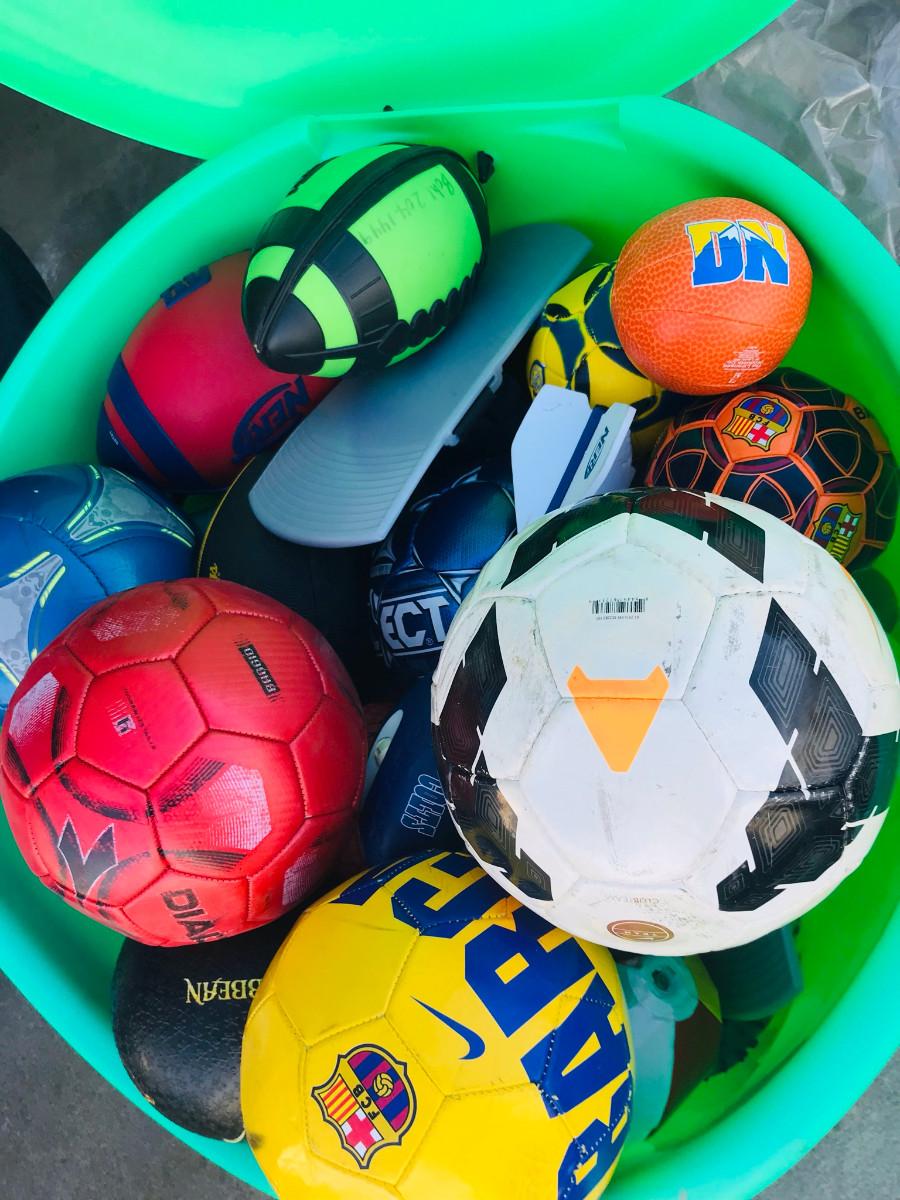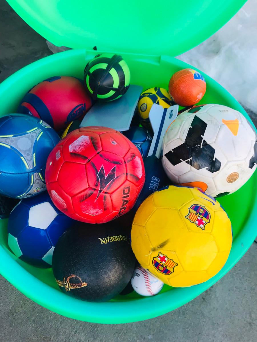 This has sat outside, so the green is faded. Lots of balls, great for the kiddos!