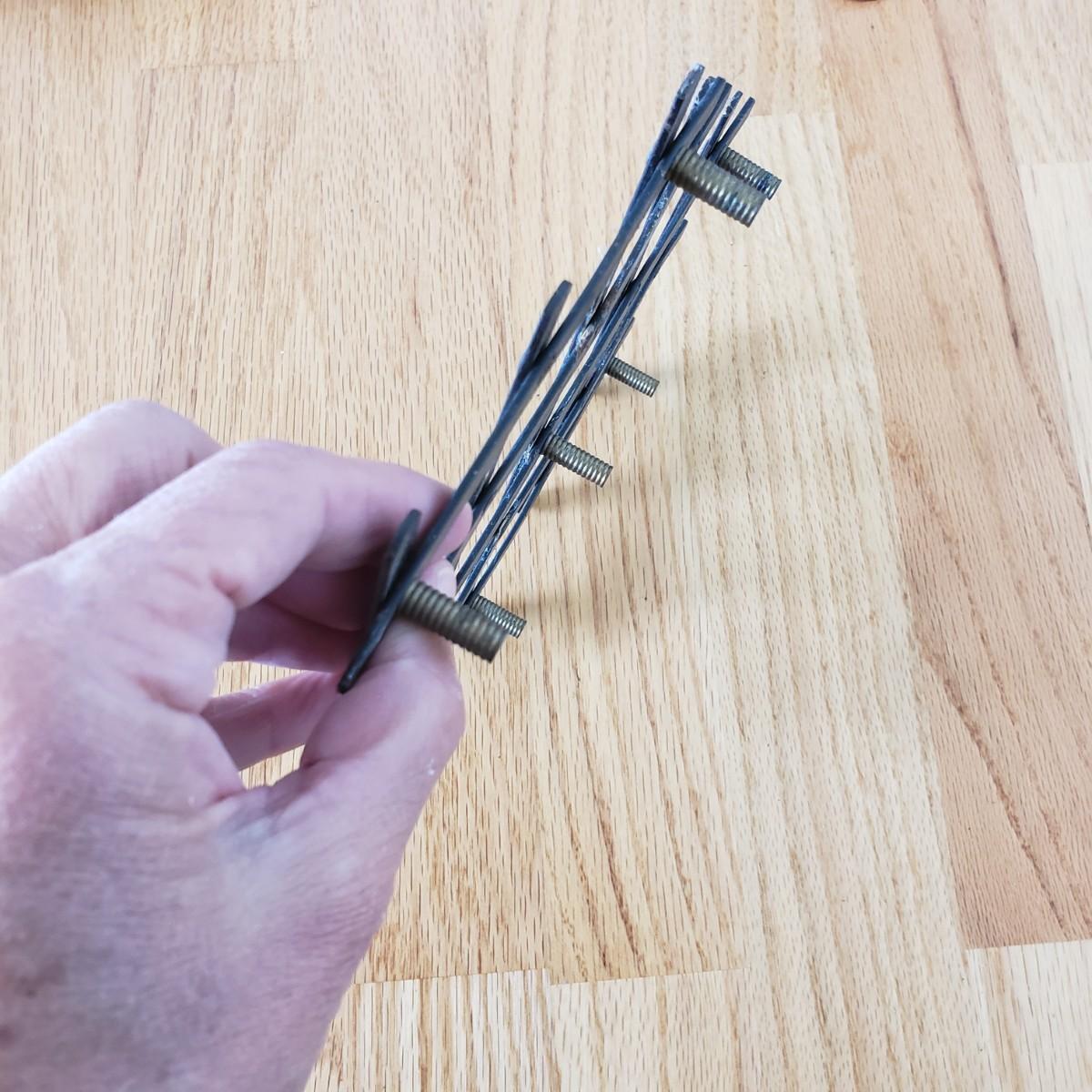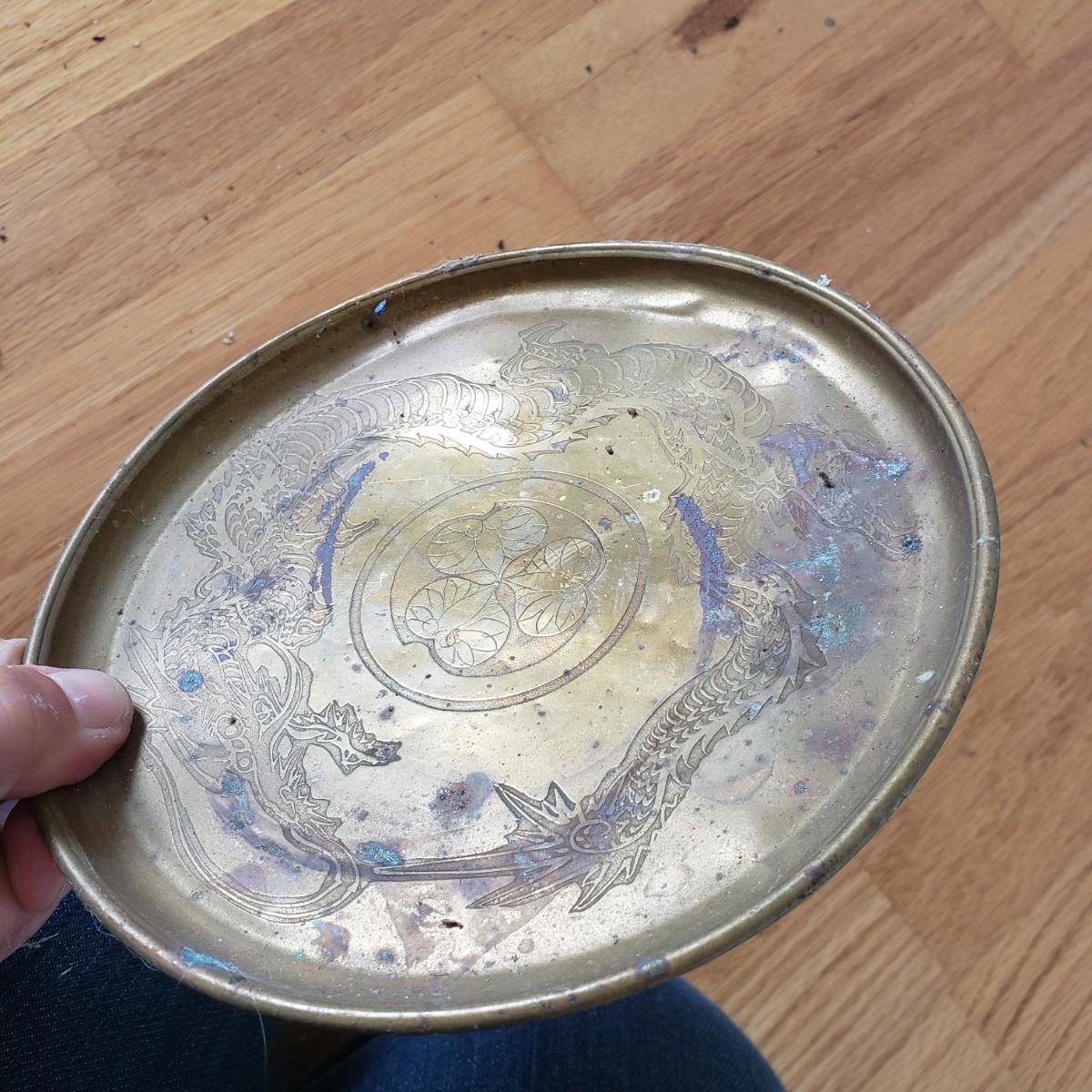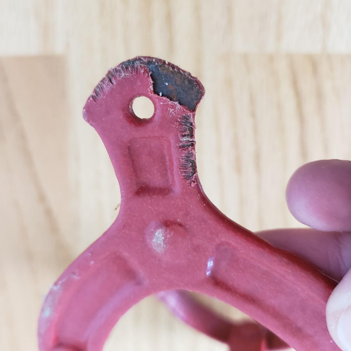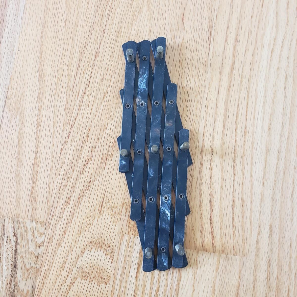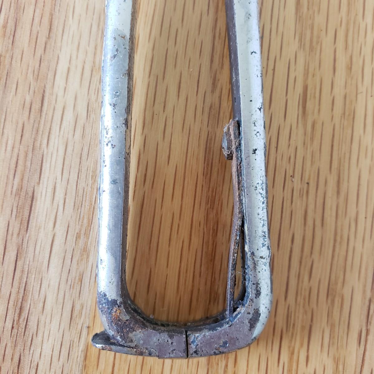 This lot contains three frogs from Dazely Flower Holder Co. From LA California. One of the grates has detached from the base. See picture. There are a pair of SRD made in Germany trimmers with engraved handles measuring 10". The large hedge trimmers are rusty, but useable. The red bridle bracket with a hook was made in England. The brass, pump mister was made in Hong Kong. The oil can measures 8" x 6"H.