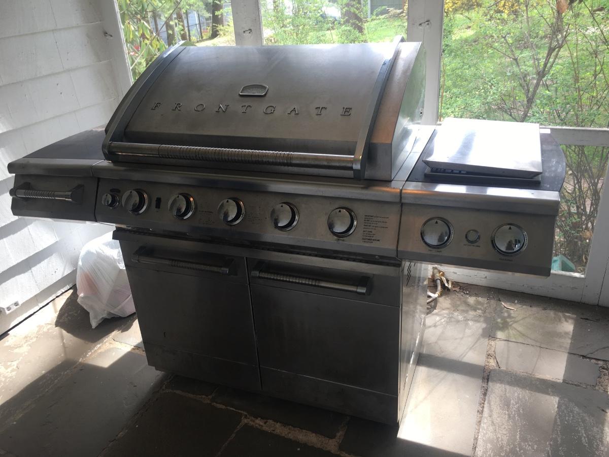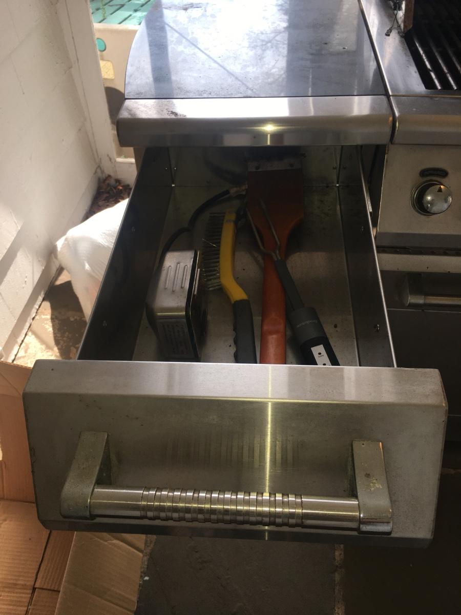 Large stainless steel bbq with side burner and drawer for accessories. Natural gas hook up .Used condition.