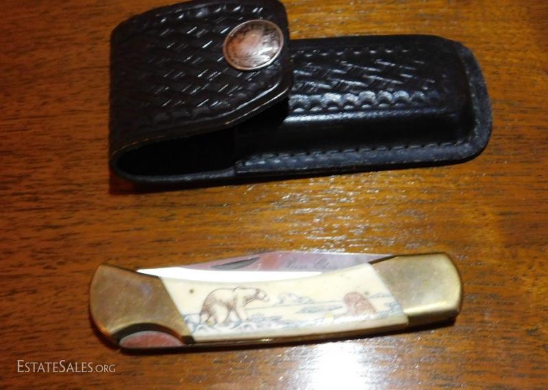 Frost Cutlery Bear Knife with Sheath in good condition. Has some wear from use.