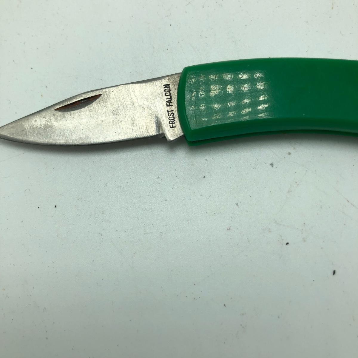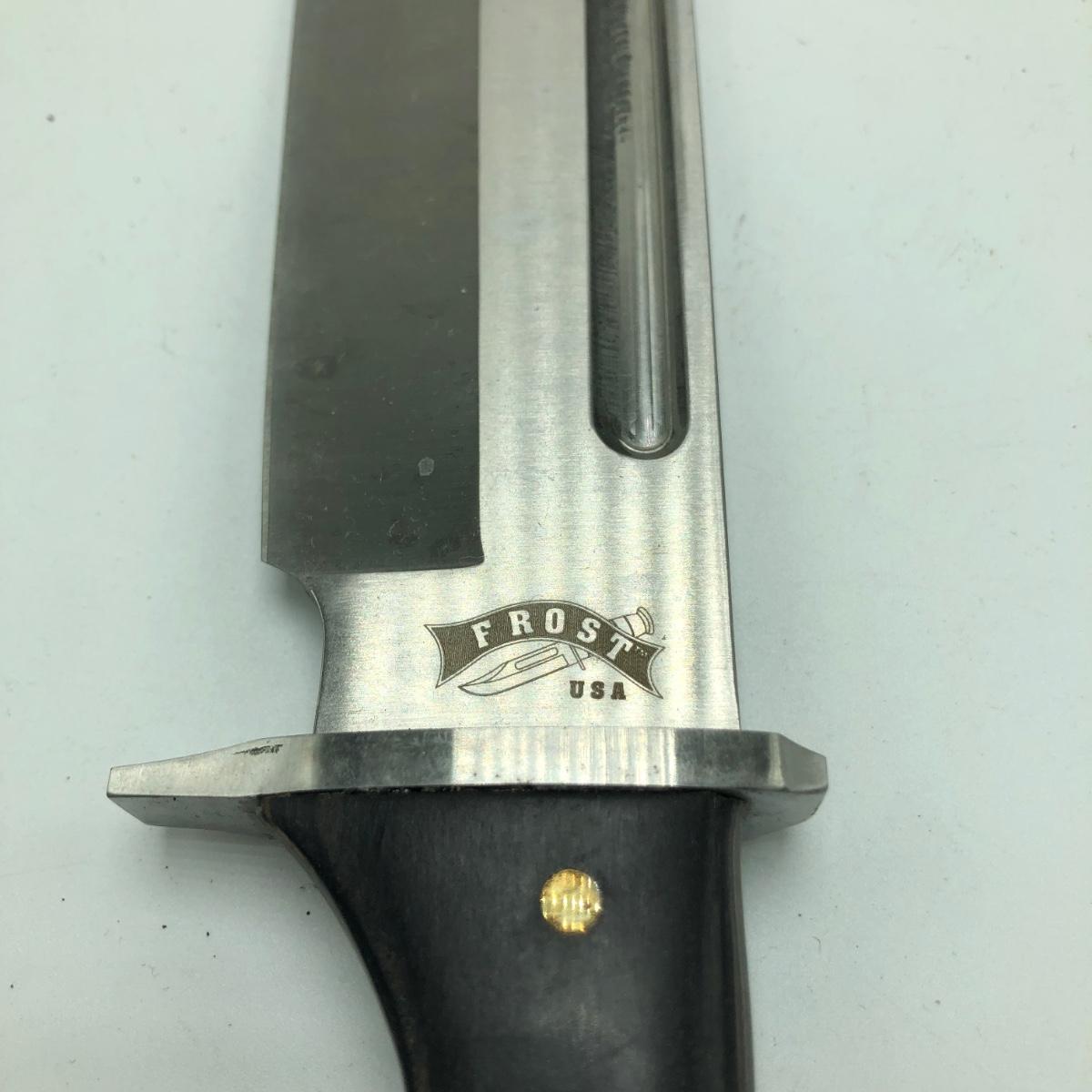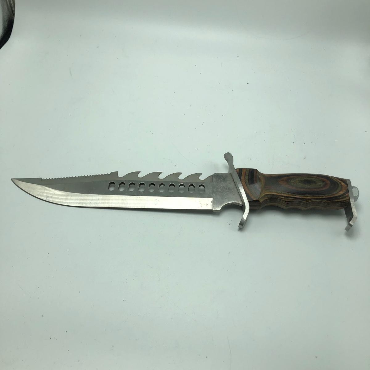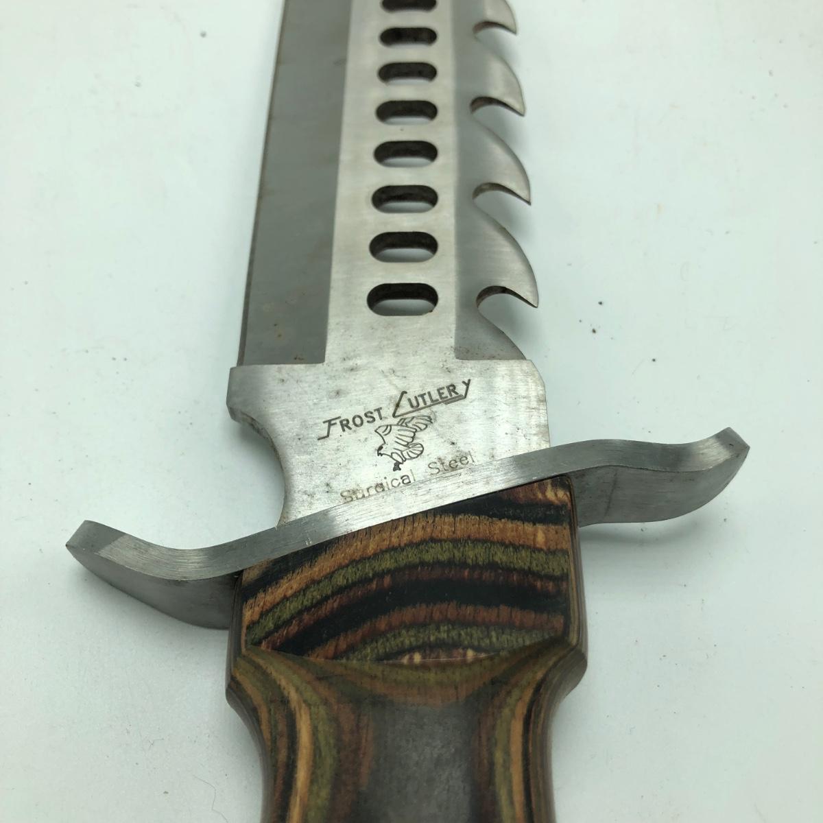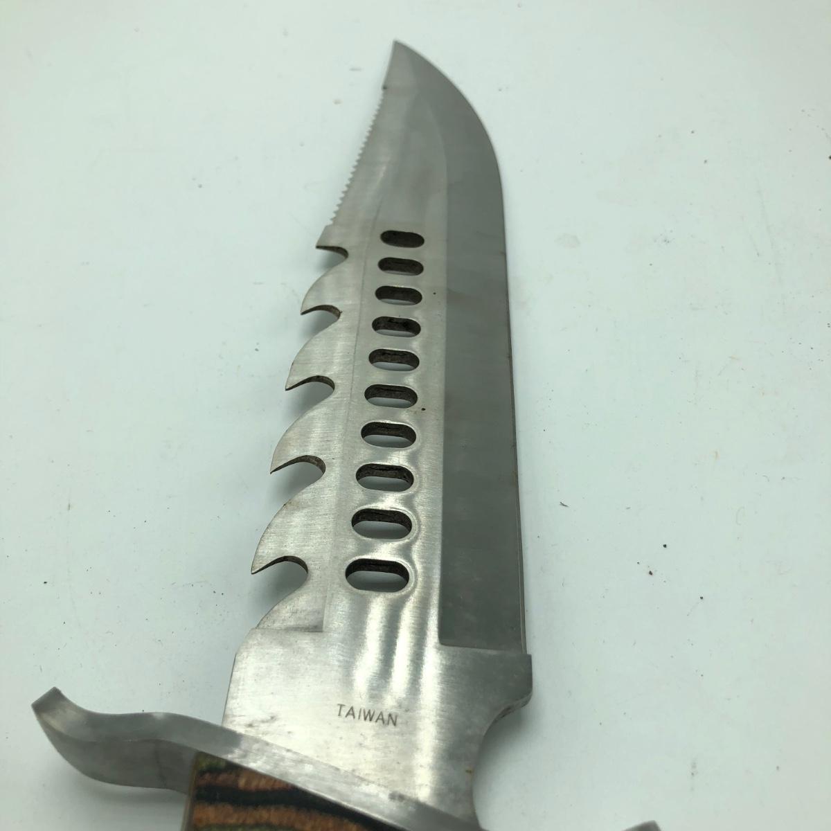 Lot contains a total of six knives: two Bowie knives, one skinner knife, two pocket knives and a three blade fish knife. Largest knife measures 16” long.
