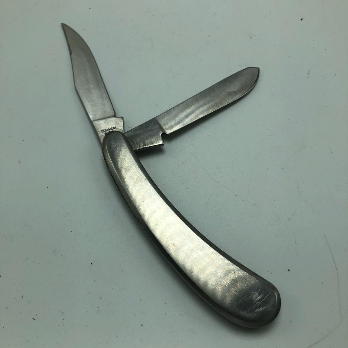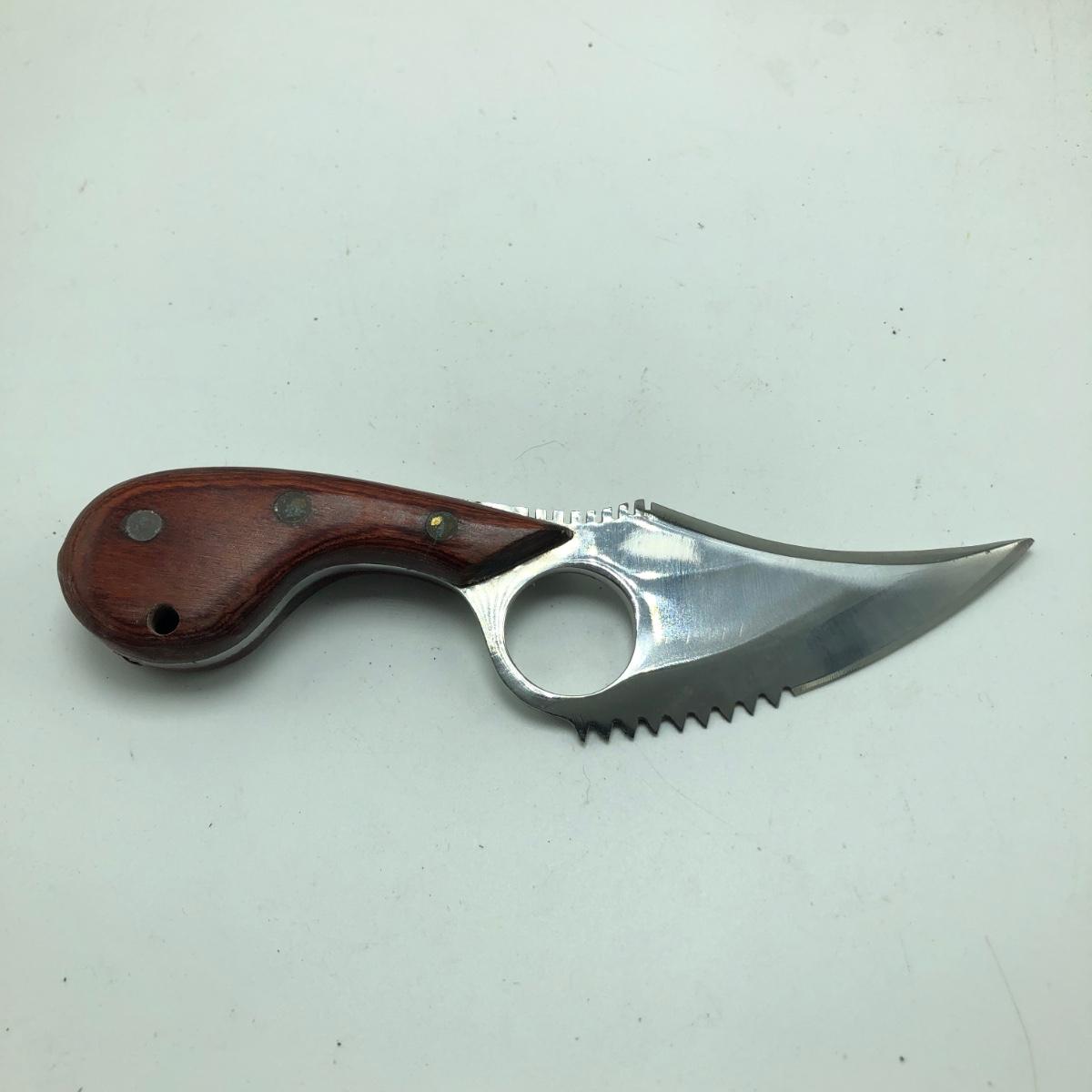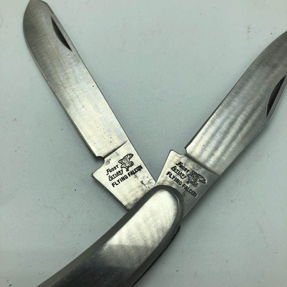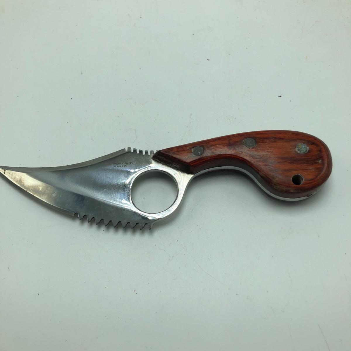 Lot contains a total of six knives: two Bowie knives, one skinner knife, two pocket knives and a three blade fish knife. Largest knife measures 16” long.