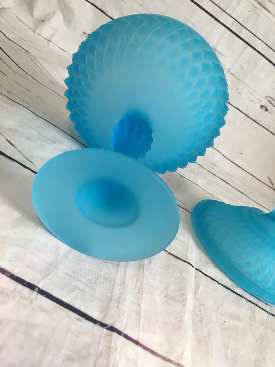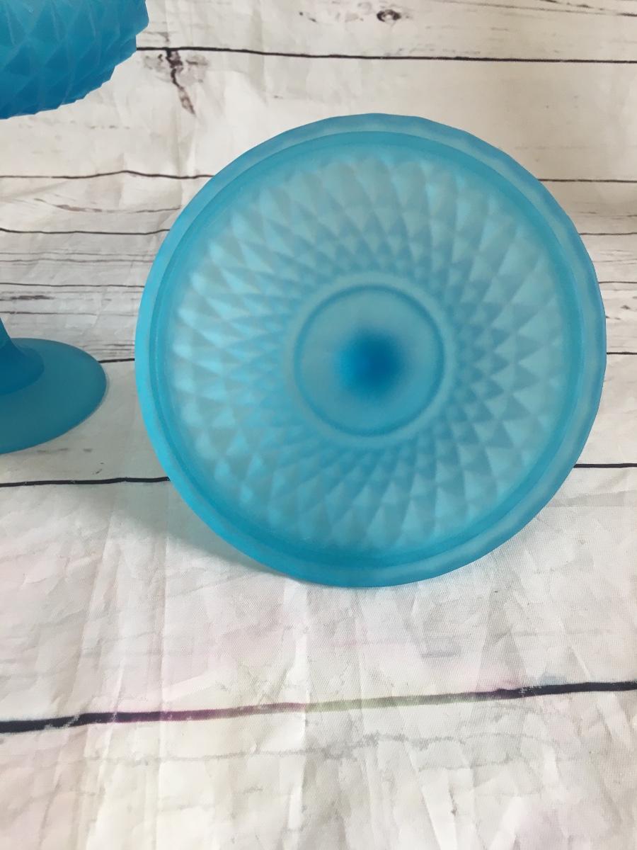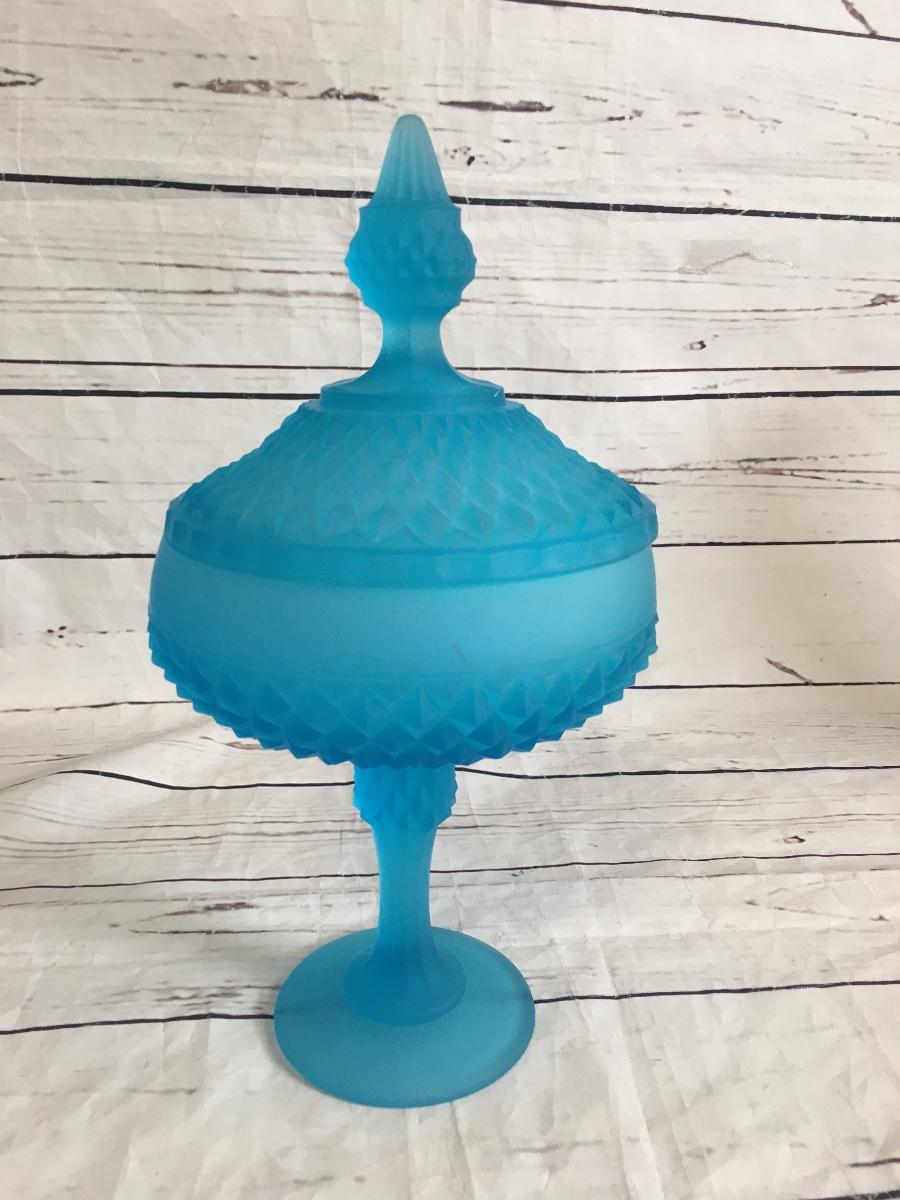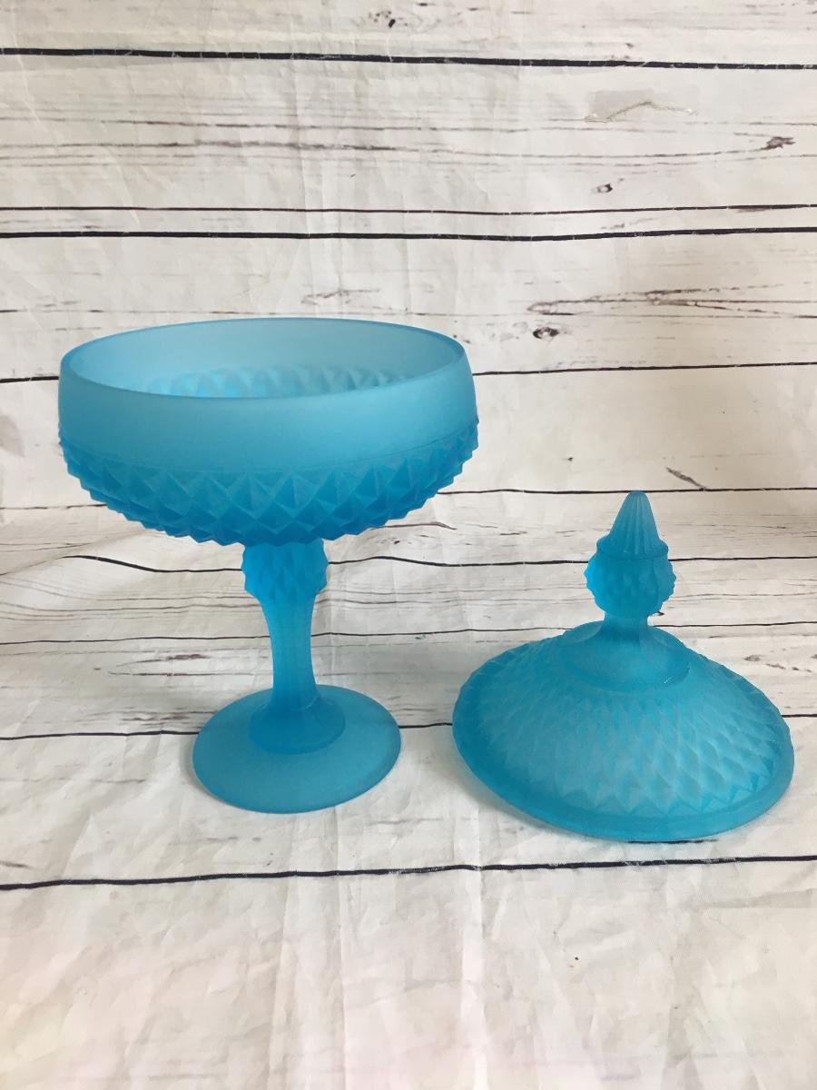 1950 Blue Indian Glass Frosted Blue Candy Dish