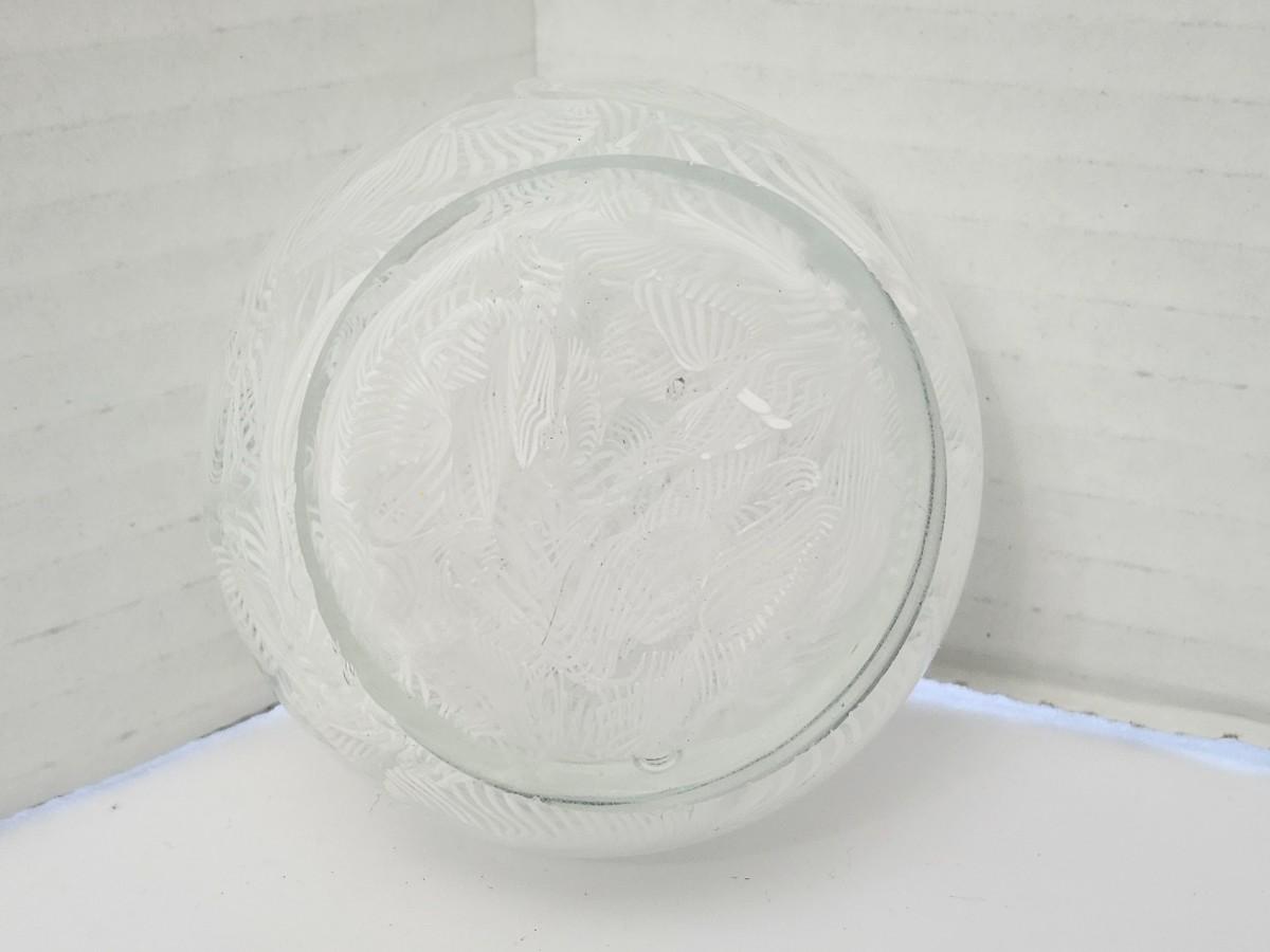 Frosted Clear Glass Paperweight With Swirled Etched Pattern Vintage Decorative Desk Weight