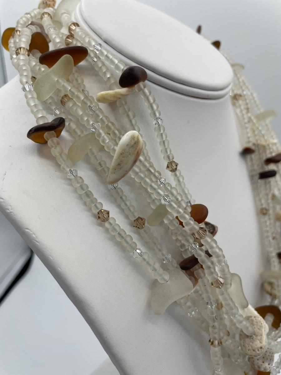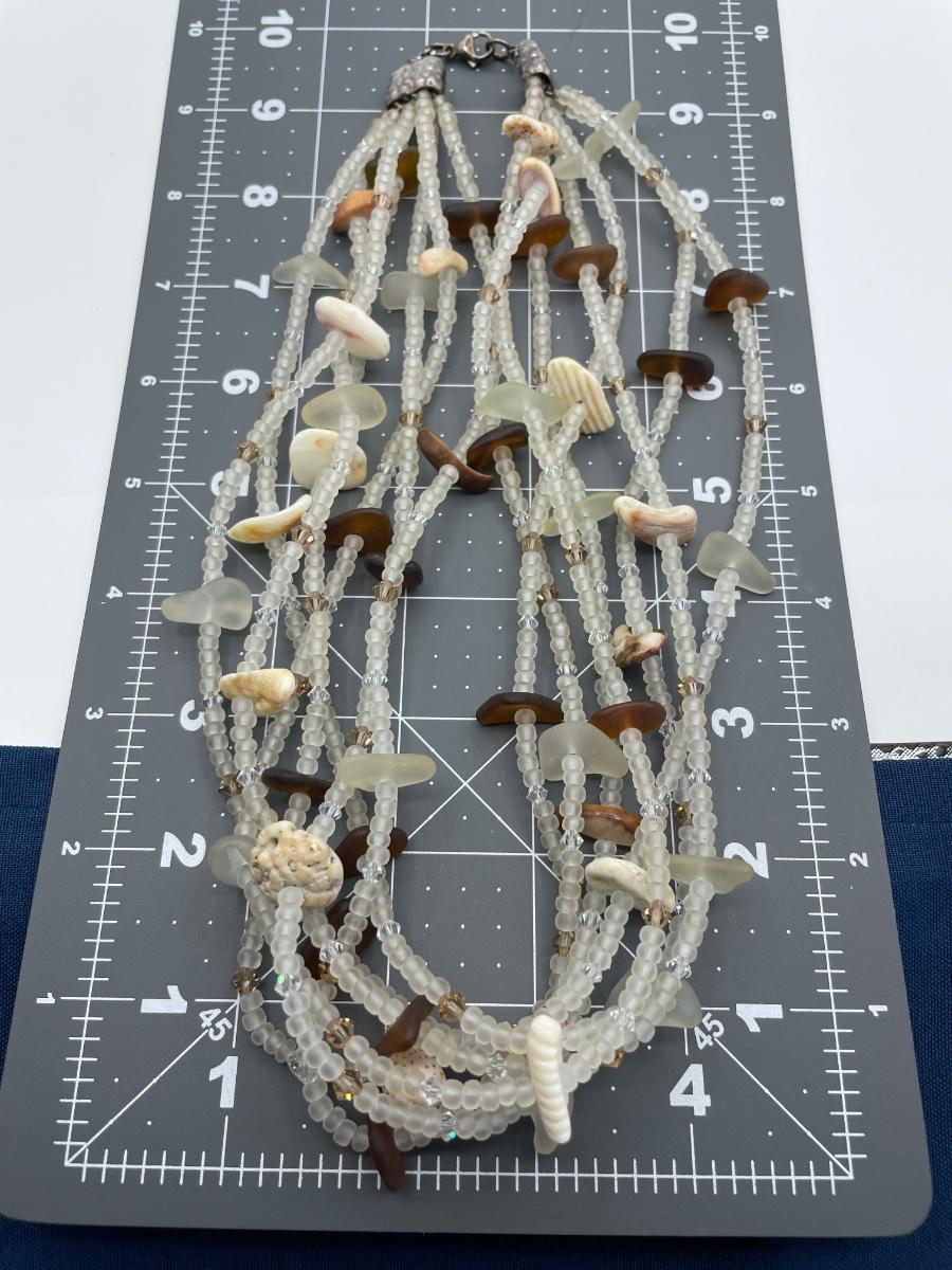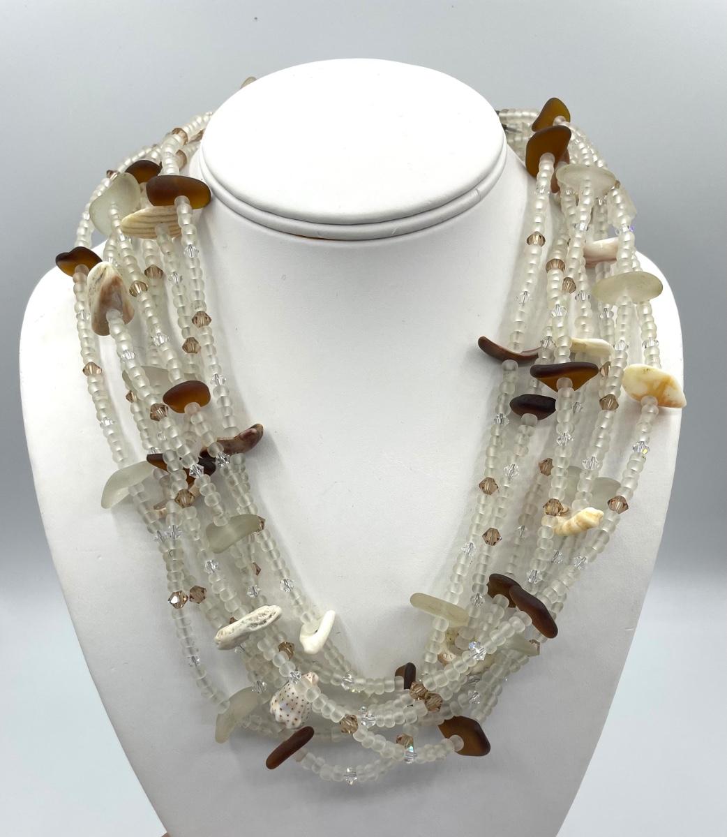 Frosted Glass and Shell Necklace with Sterling Silver
