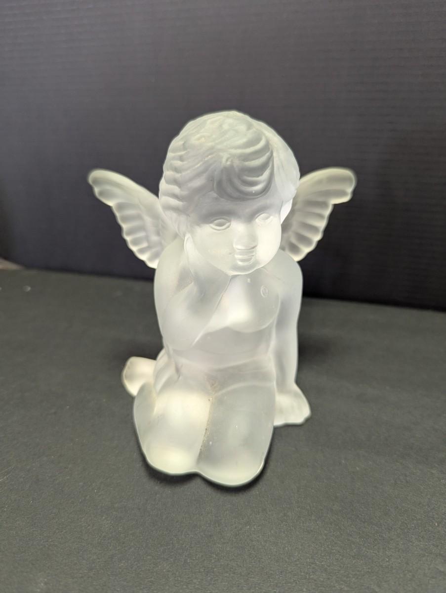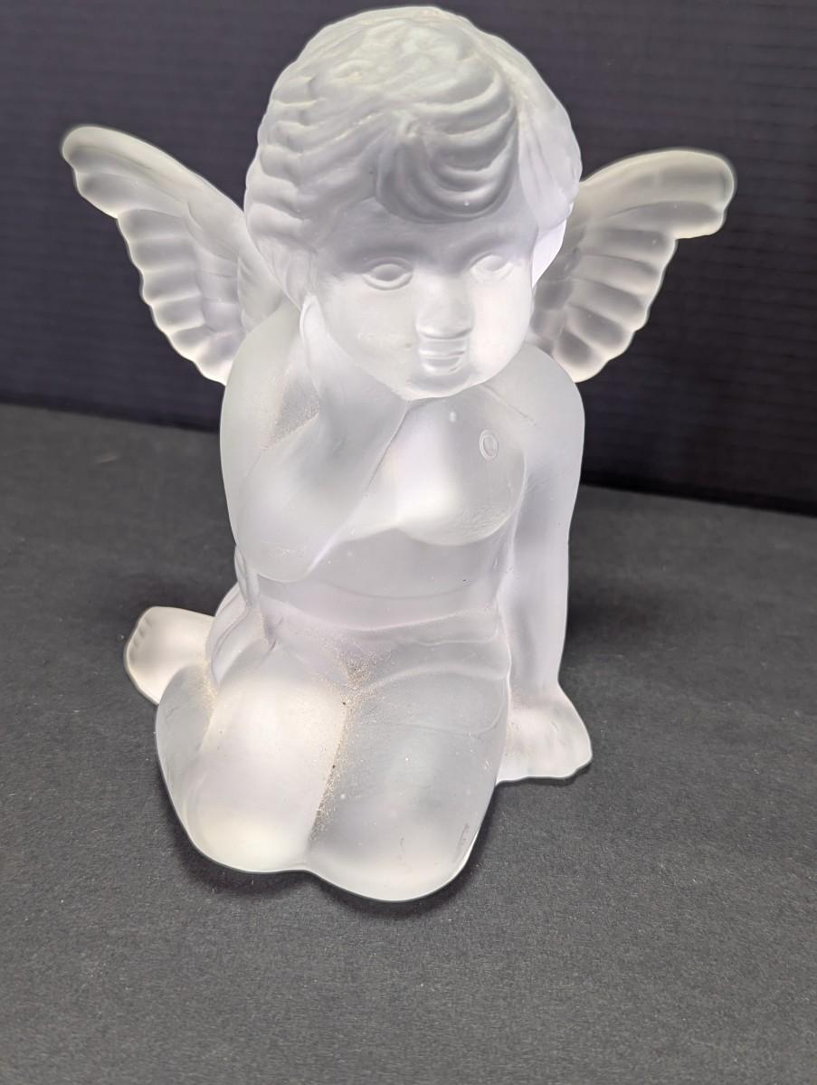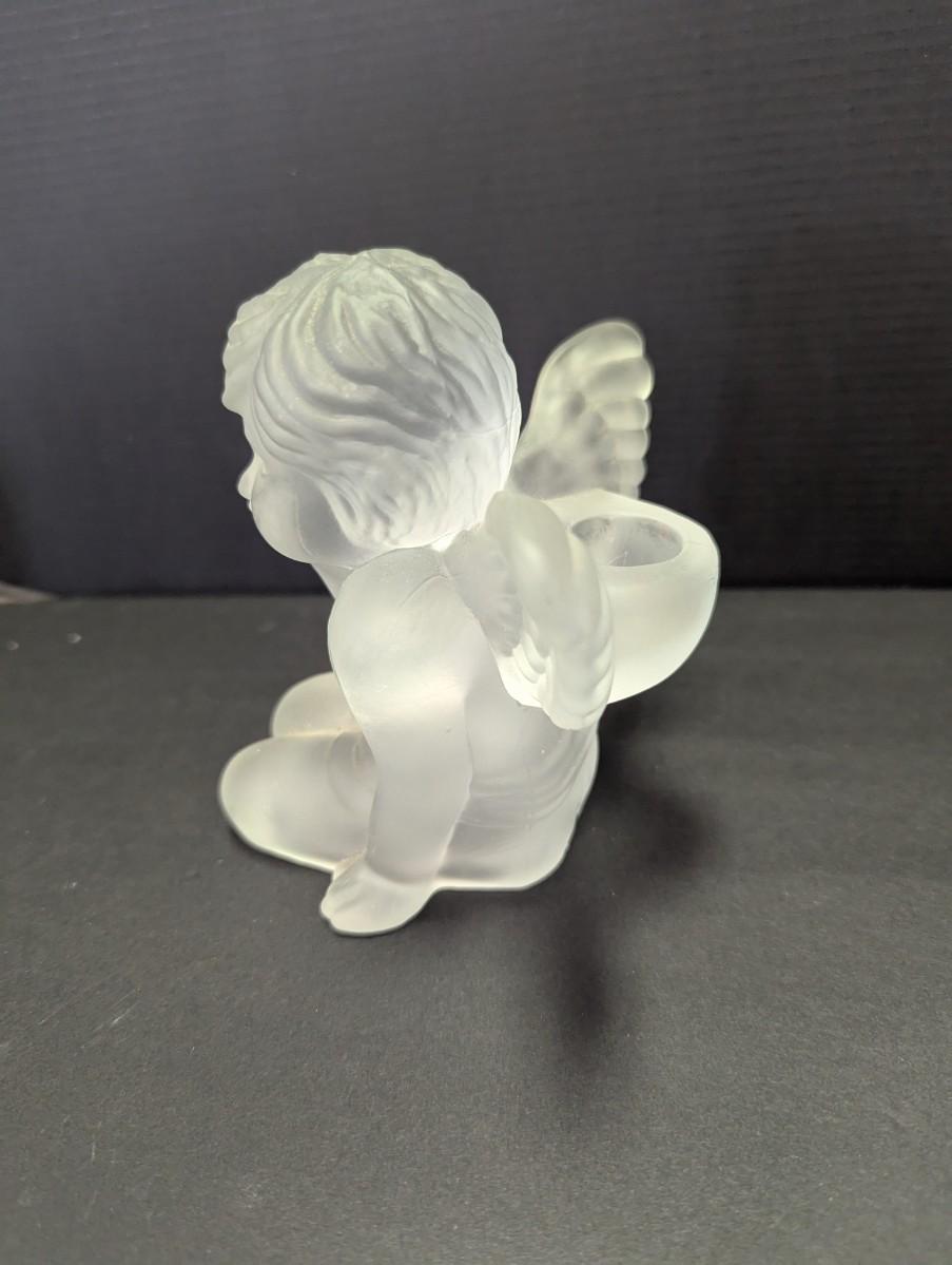 Frosted Glass Angel Cherub & Avon Cat Glass Tea Light