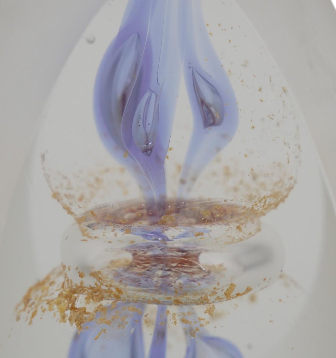 Frosted glass egg art sculpture. Small wear to one part of frost, no other issues found. Gorgeous piece! Measures 2" x 2" x 4", weighs 1 lb 1.2 oz.