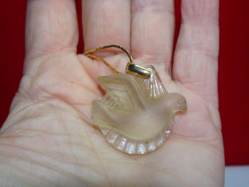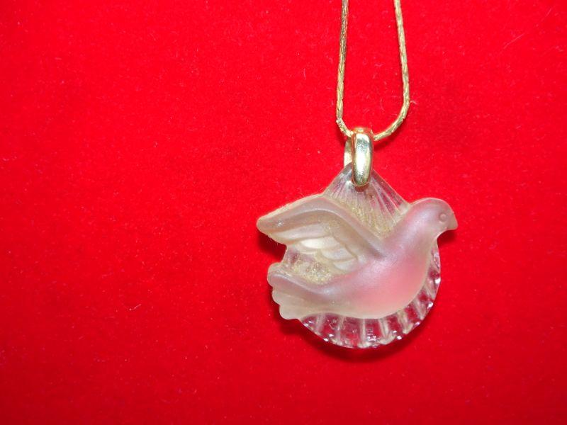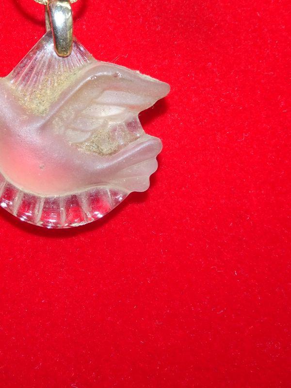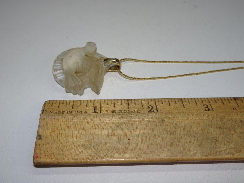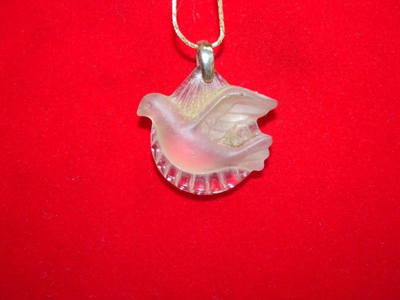 Frosted Glass Holy Spirit Pendant Necklace, Gold Tone Chain, Turtle Dove, Glass or Crystal