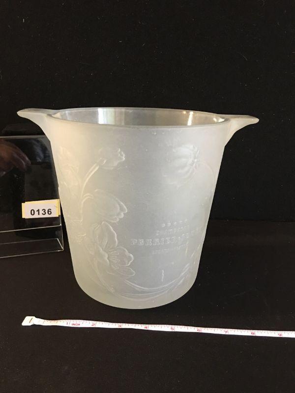 Frosted Glass Perrier Champagne Bucket. Has a Lalique feel to it. Nice