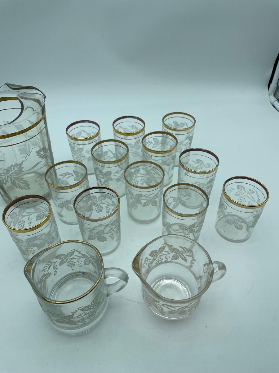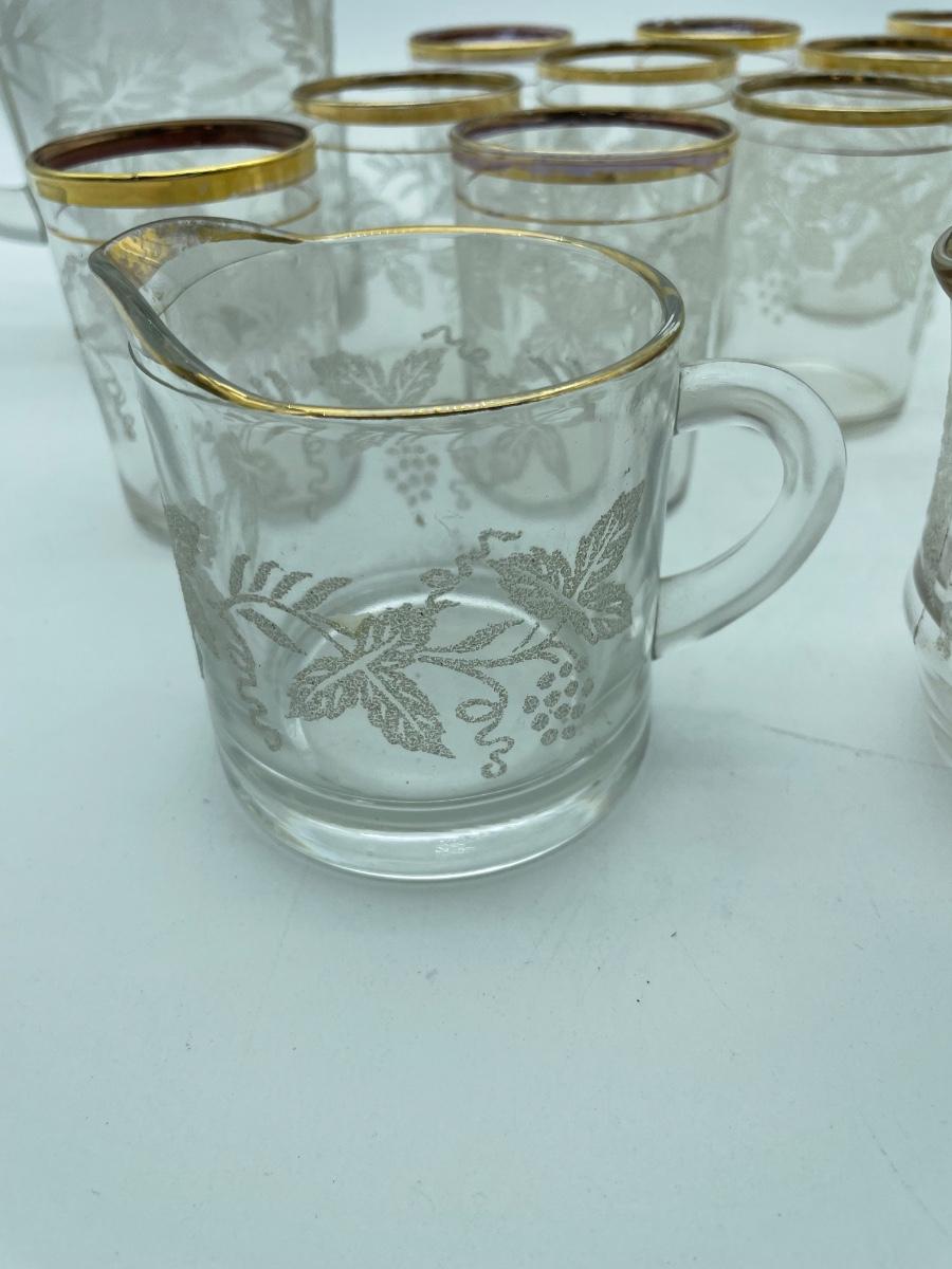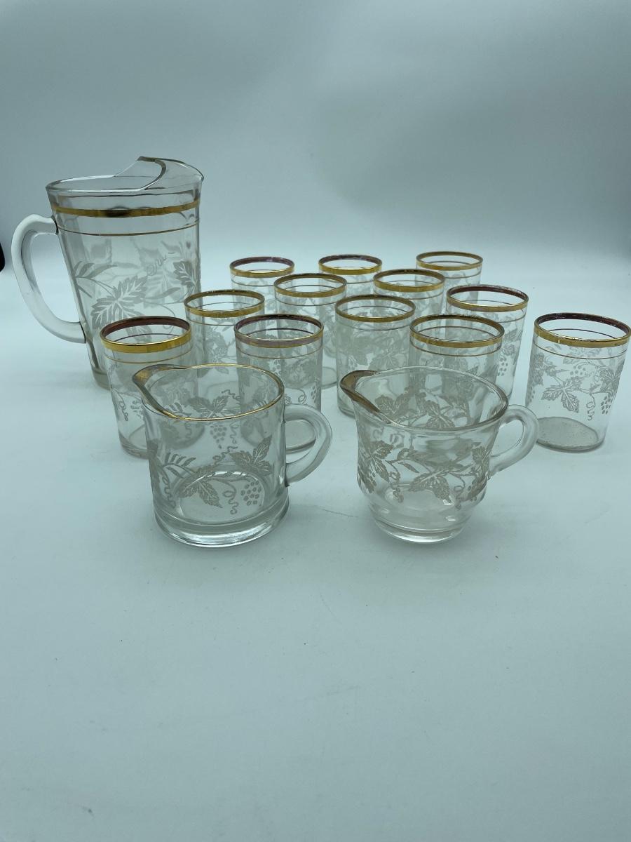 Frosted grape pitcher and cups