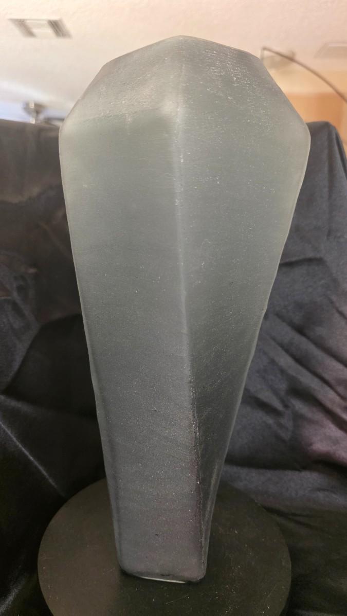 Frosted Obelisk Glass Vase – Modern Geometric Art Decor in Fog Gray (14”)