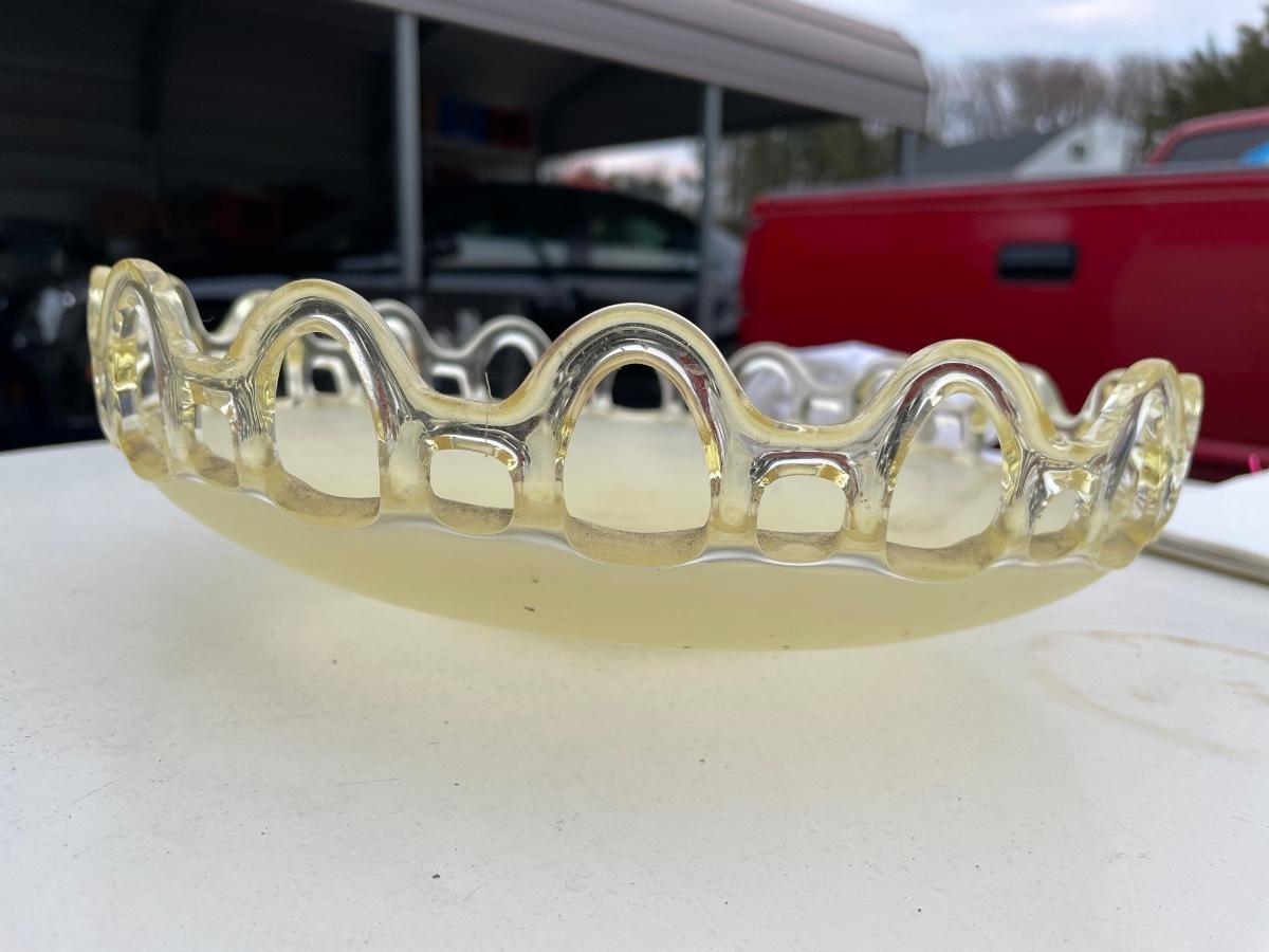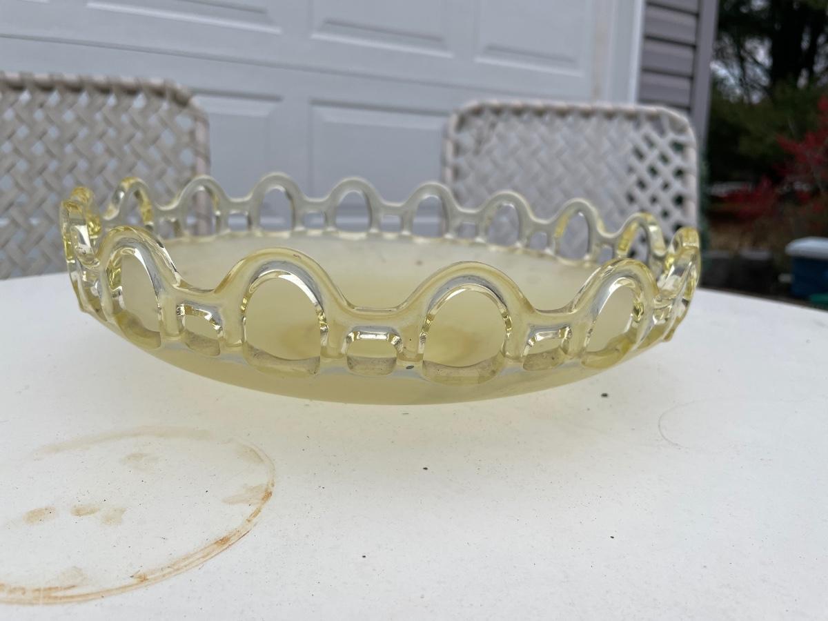 Vintage serving platter with lattice design