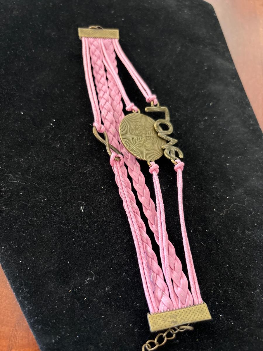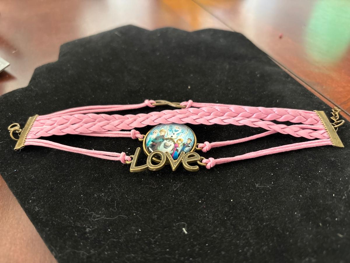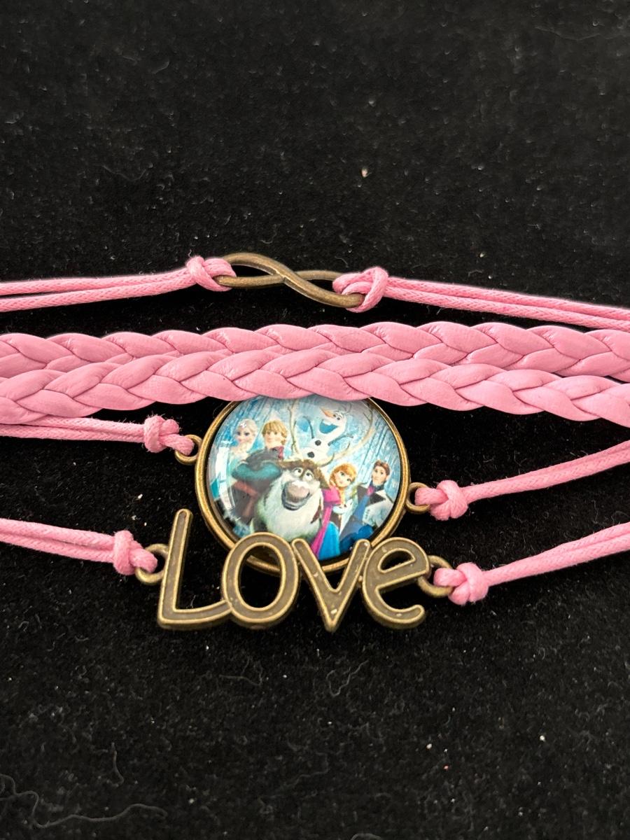 Frozen Elsa Anna Braided Love Leather Style Pink Silvertone Color Bracelet