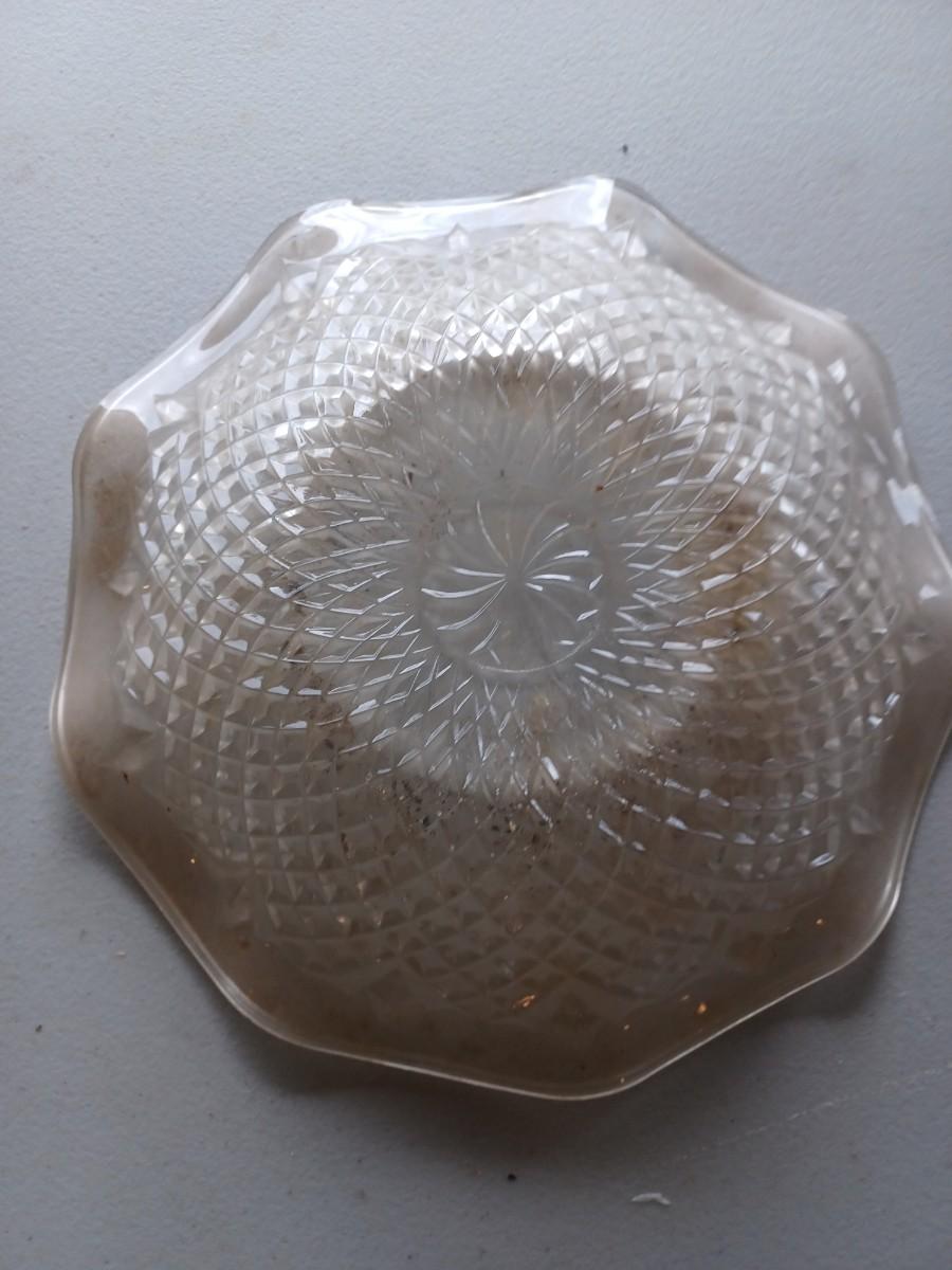 FRUIT BOWL IRIDESCENT DIAMOND CUT DEPRESSION ERA CARNIVAL GLASS 11" INCH ROUND