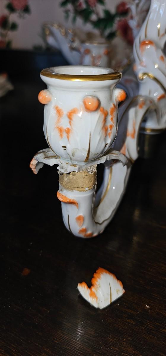 the candlesticks have an insert that adds 3 arms, however the arms have broken parts.