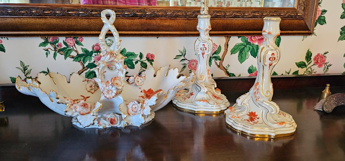 The candlesticks are in good shape and so is the bowl/ basket. I don't see chips or cracks