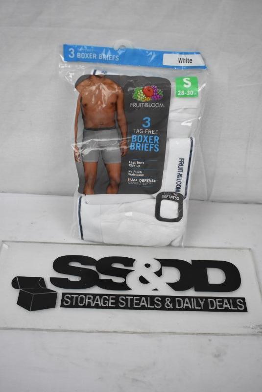Fruit of the Loom 3 Tag-Free Boxer Briefs, Size Small 28-30, White - New