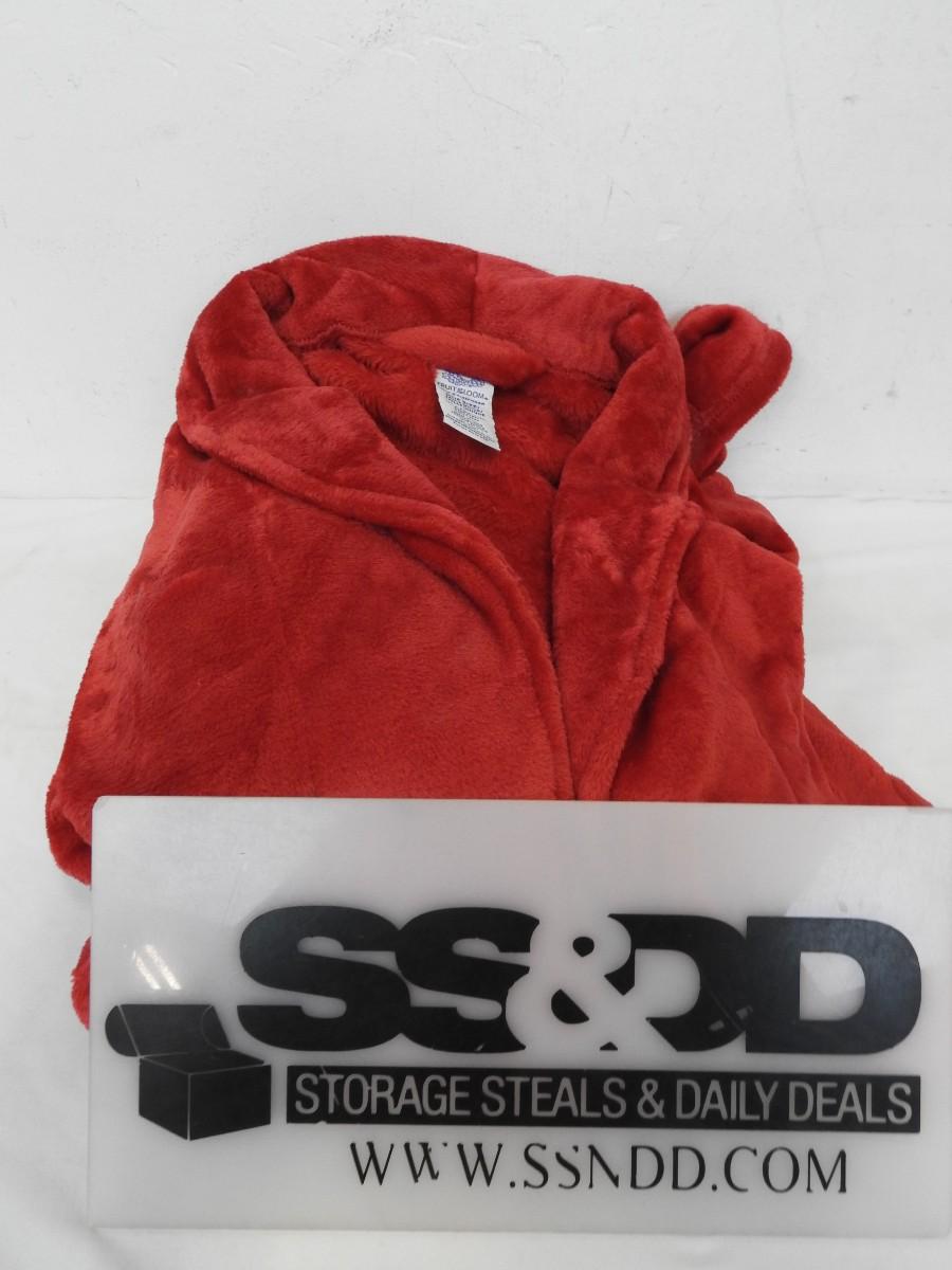 Fruit of the Loom Mens Solid Plush Fleece Robe, Red - New
