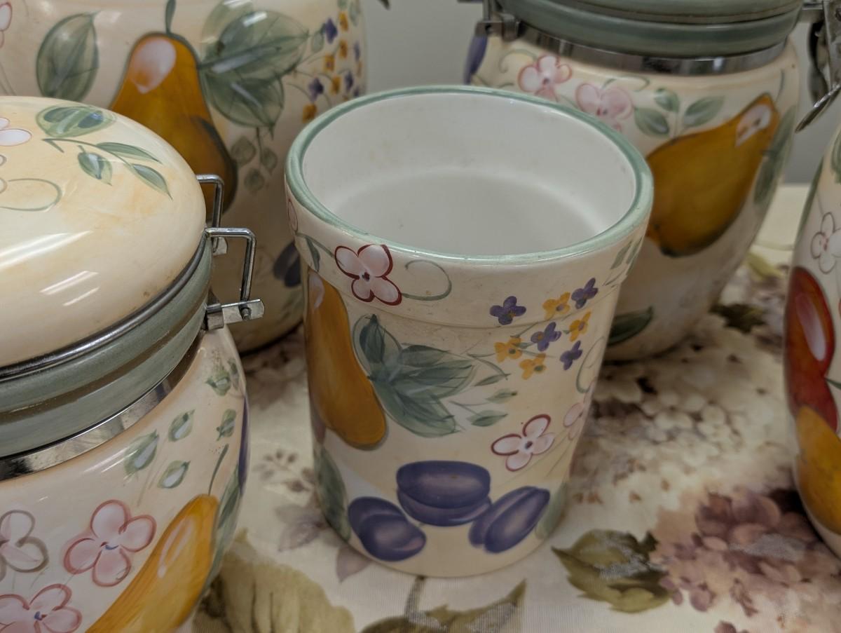 Fruit pattern kitchen canister set with utensil pot