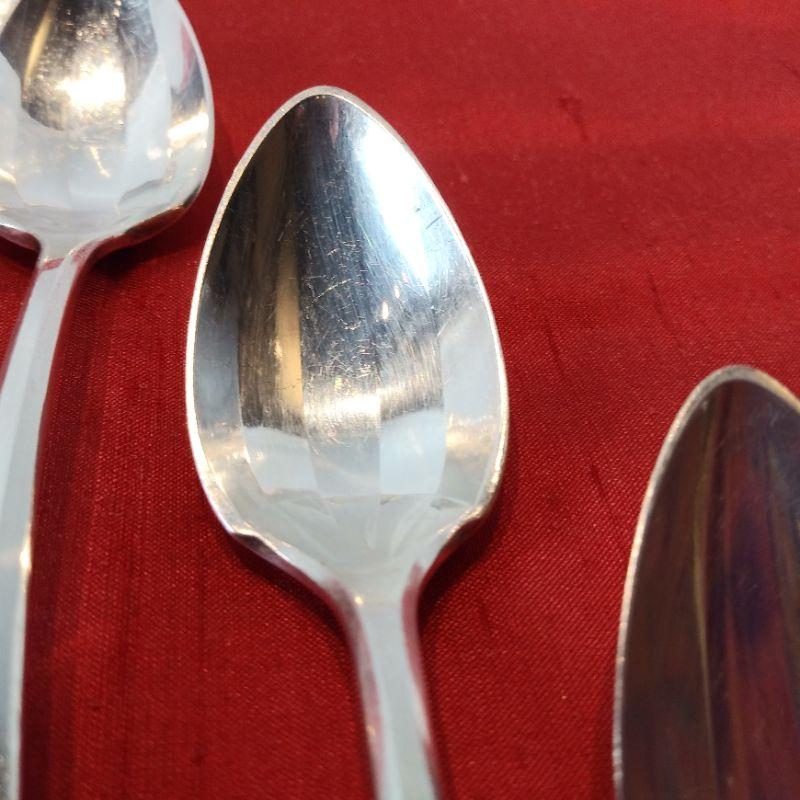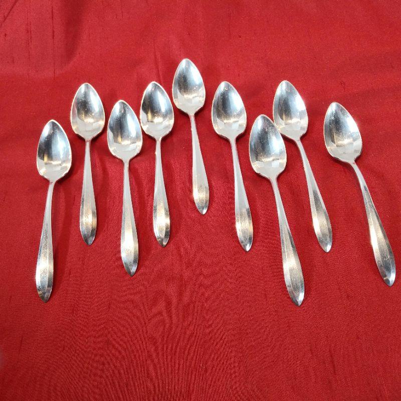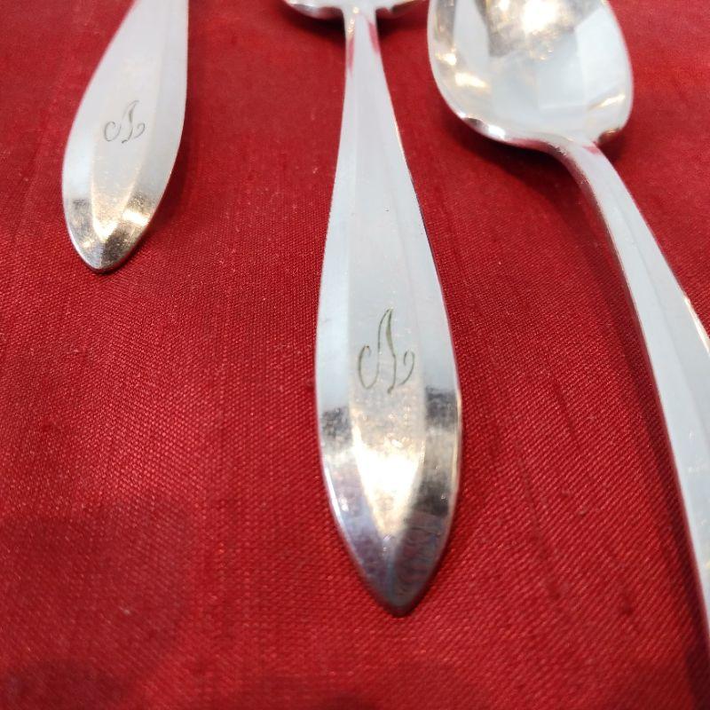 This offering is for a very nice set of 9 silver plate fruit spoons. They have a very delicately monogrammed "A" at the end of each spoon. Marked Community Silver - Silver Plate. Belonged to client's mother - our client was 92. They are in very good condition, show little wear. Simple spoons to add to your own service.
