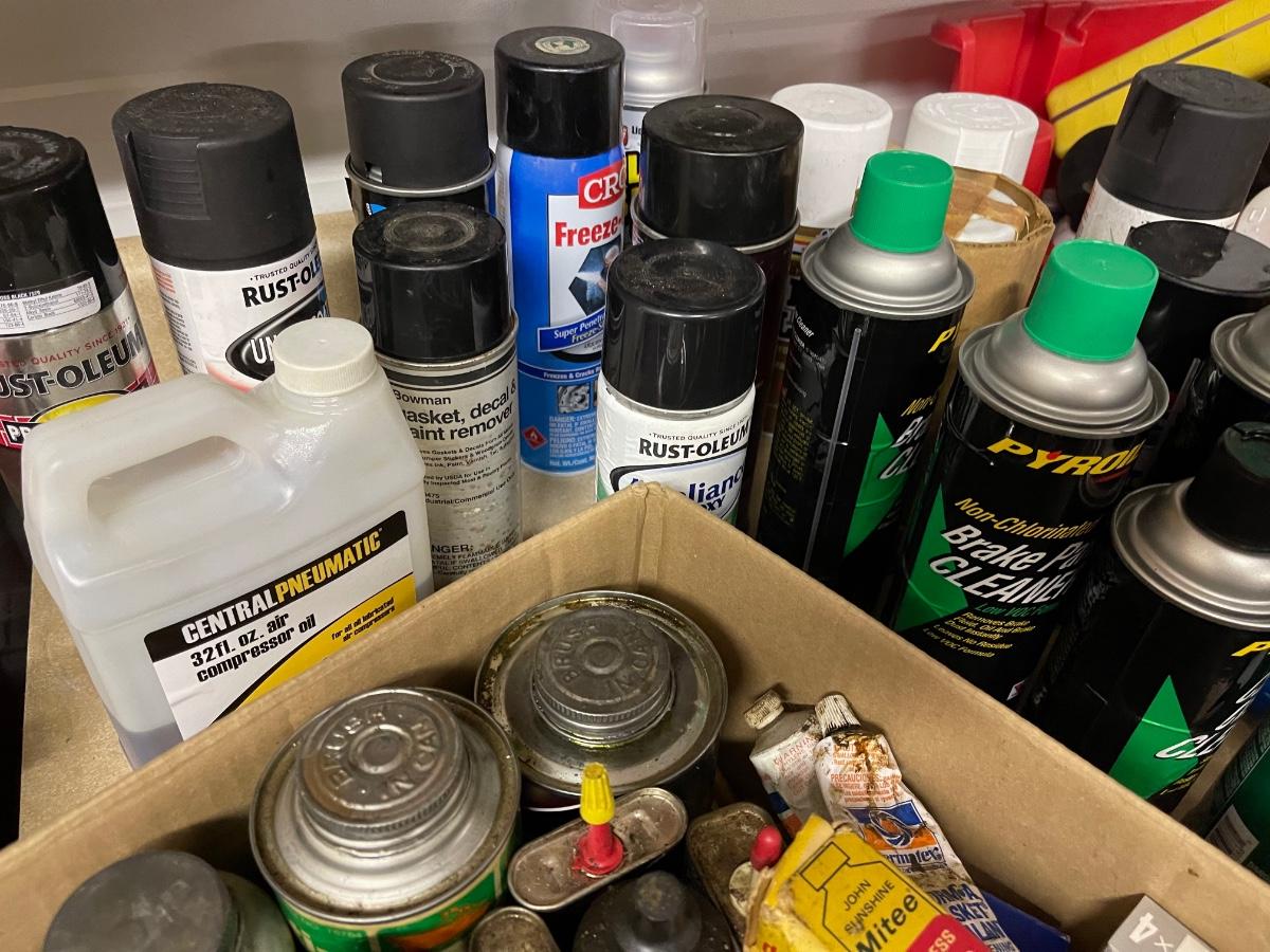 FS18-Large solvent lot. Flexseal, spray paint, brake parts cleaner, carb/choke cleaner