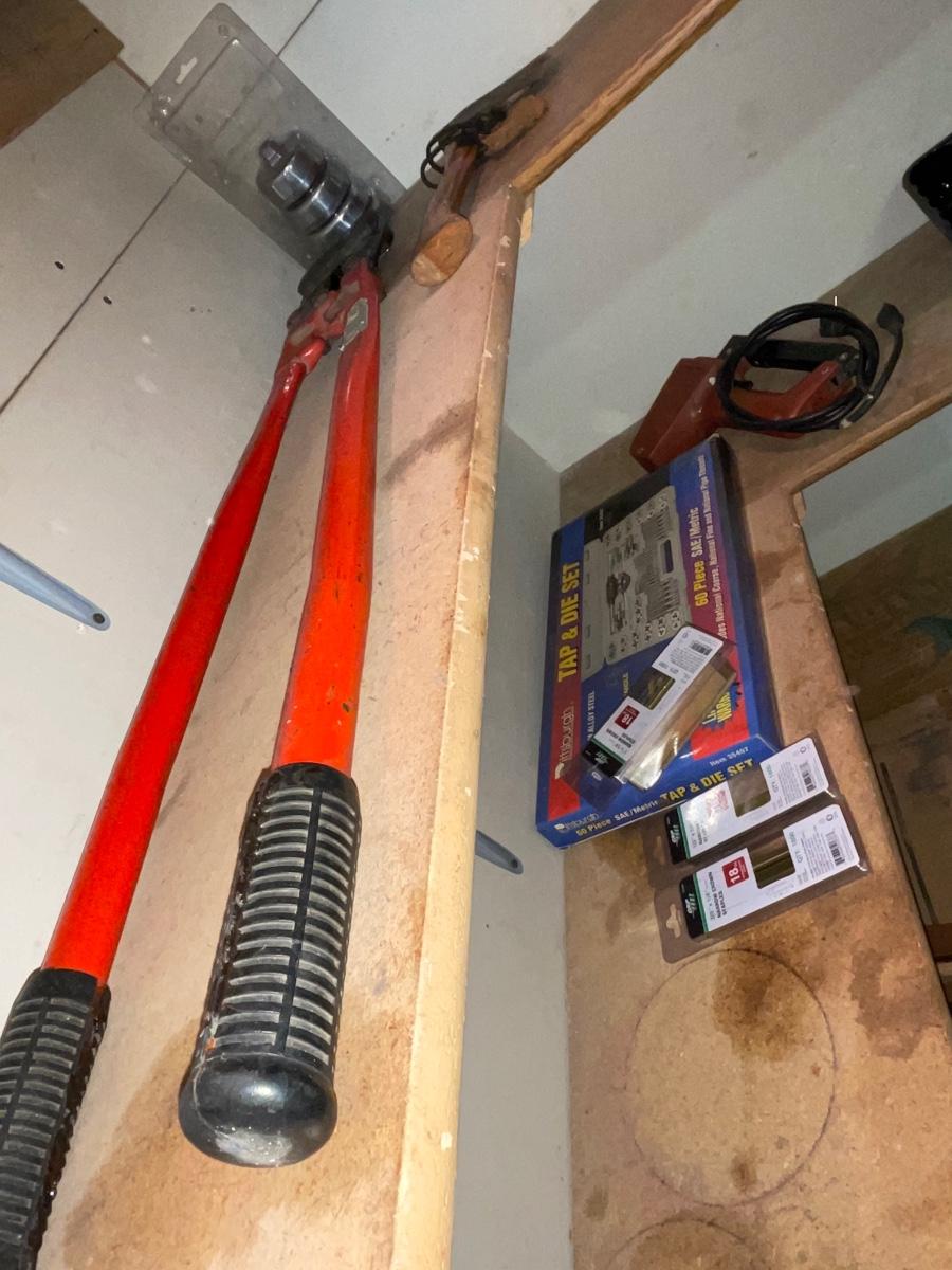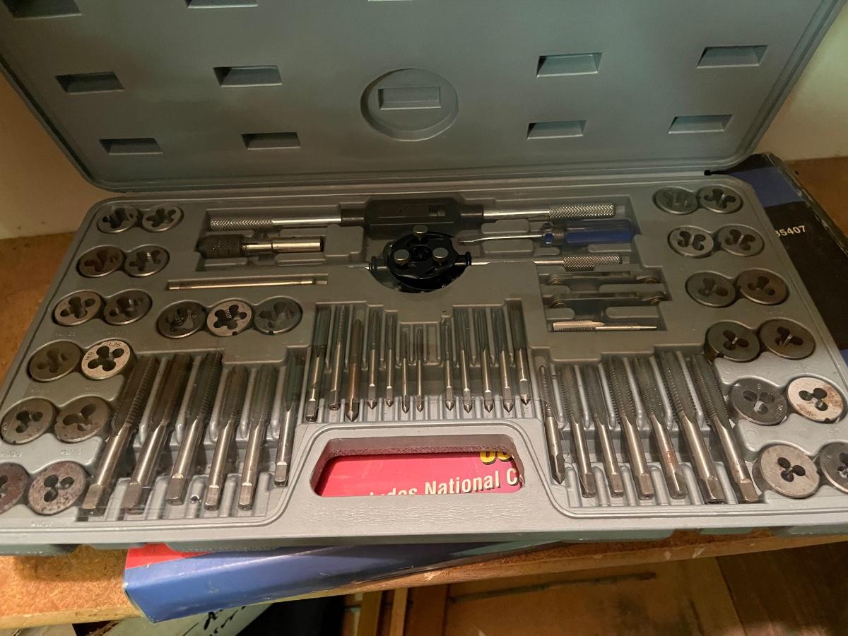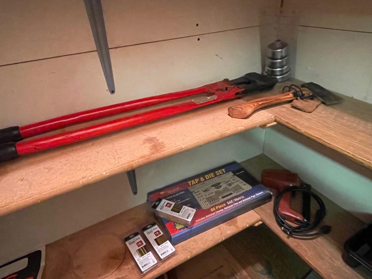 FS29-Tap and die set, large bolt cutter, hatchet plus miscellaneous