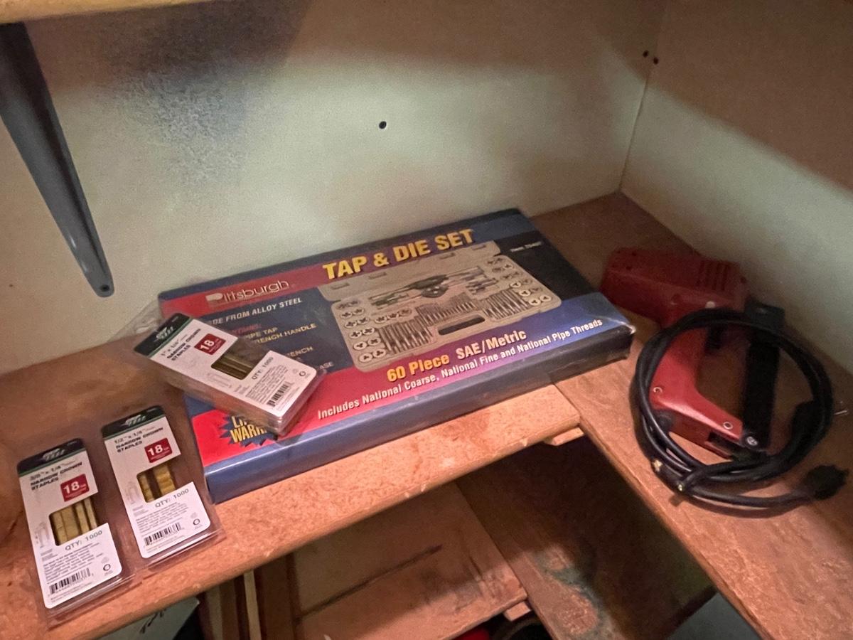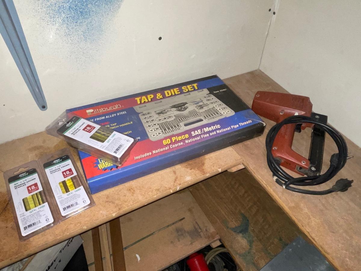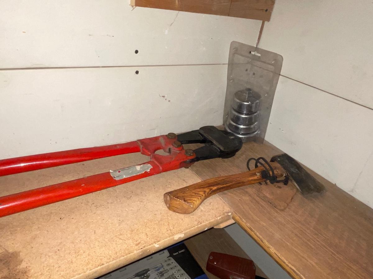 FS29-Tap and die set, large bolt cutter, hatchet plus miscellaneous