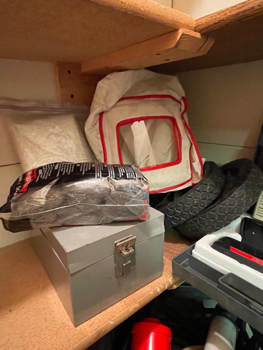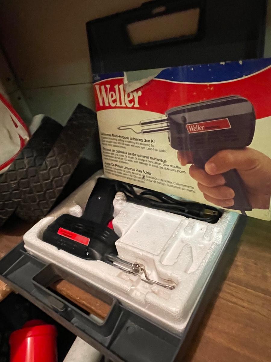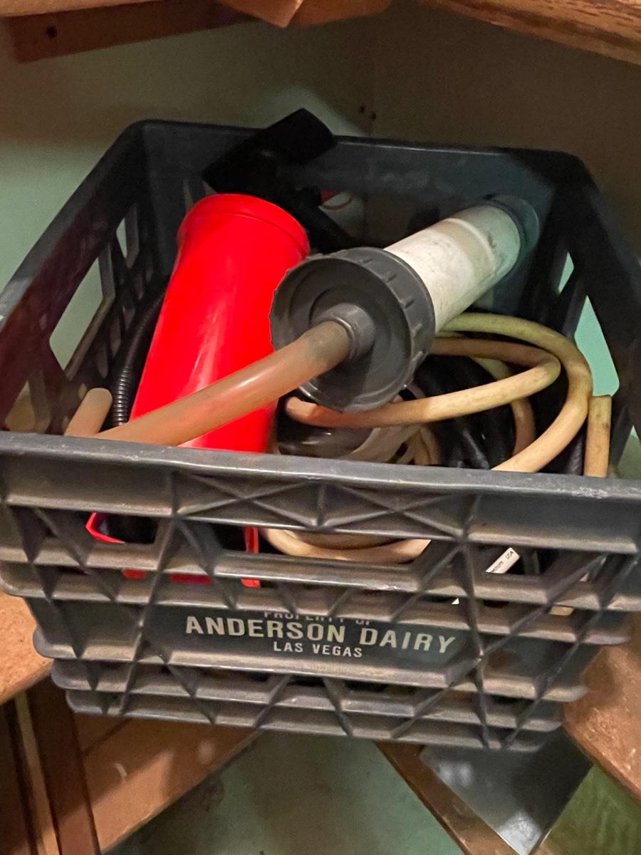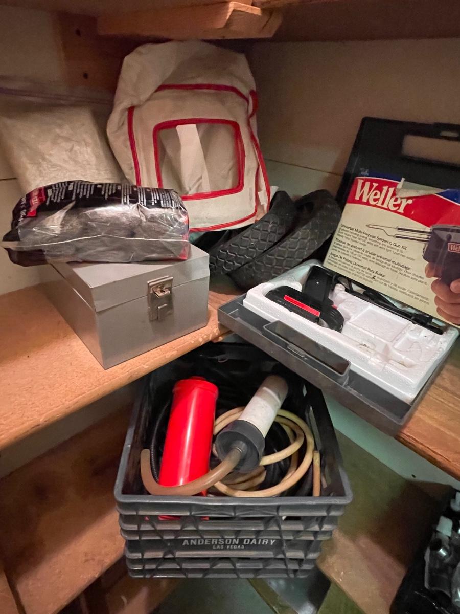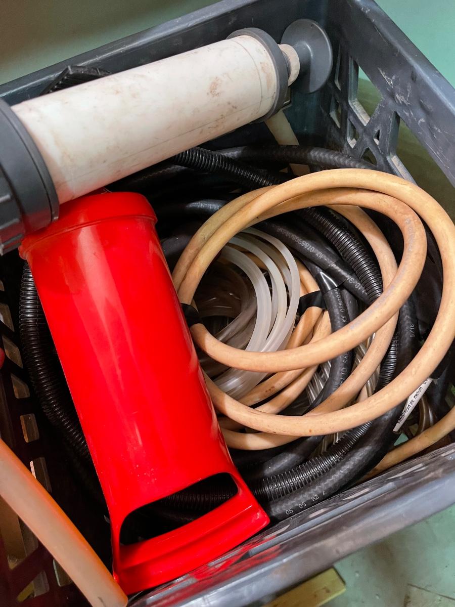 FS30-Steel wool, metal box, small wheels, soldering gun, crate with pump and hoses