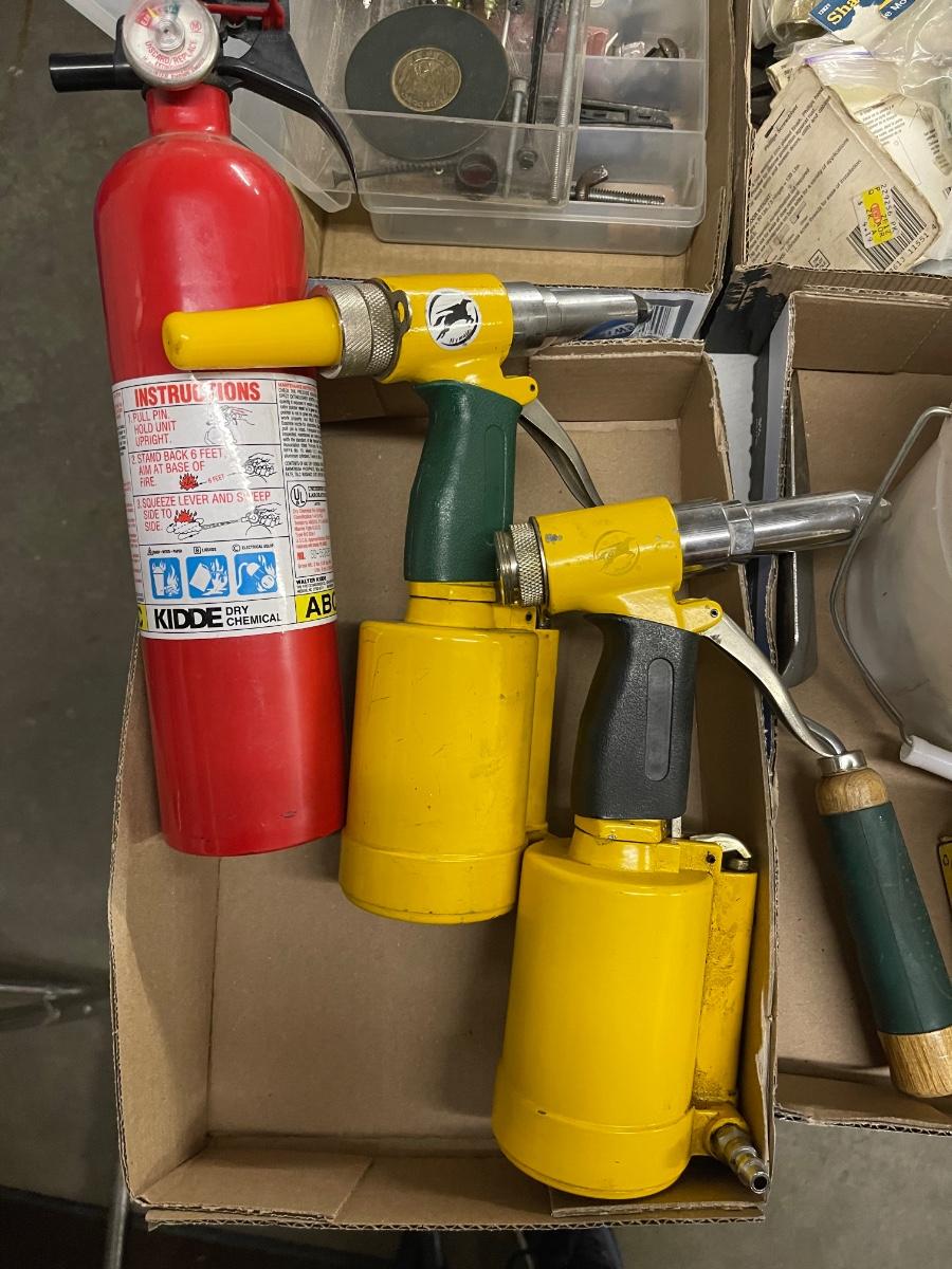 FS32-Utility chain, garden tool, drain cleaner, tie wraps, assorted tape, miscellaneous hardware/attachments, fire extinguisher, pneumatic tools