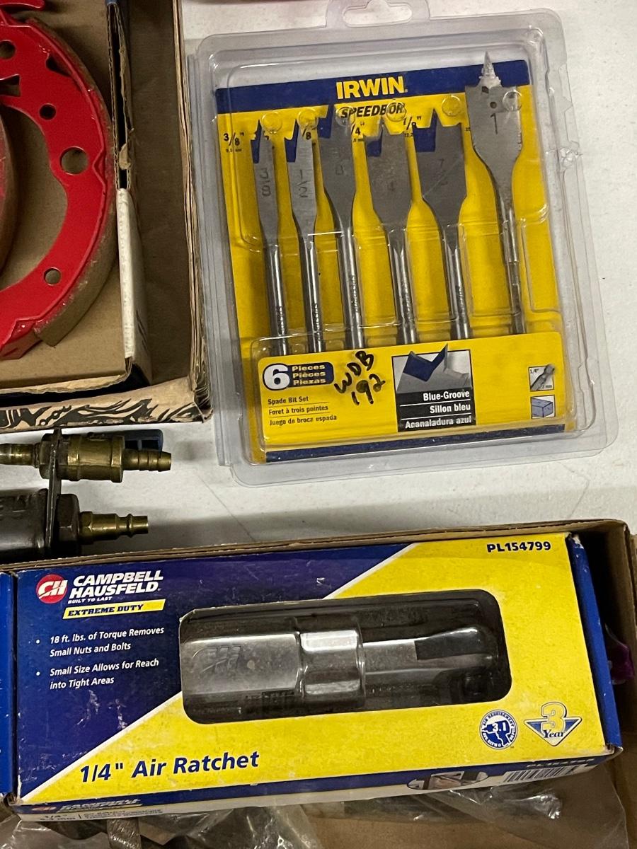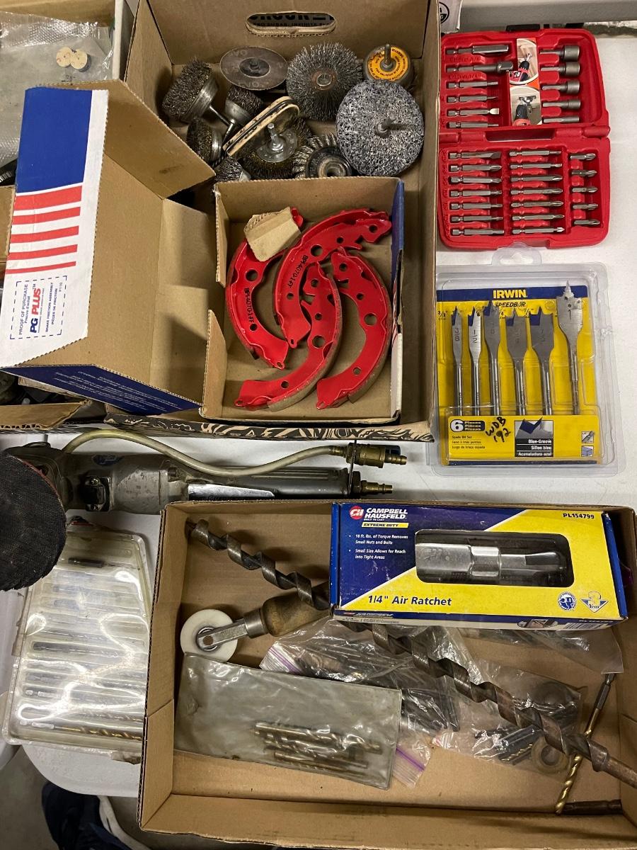 FS36-Miscellaneous handtools, gaskets, grinders/polishers, assorted bits, pneumatic grinder, quarter inch air ratchet