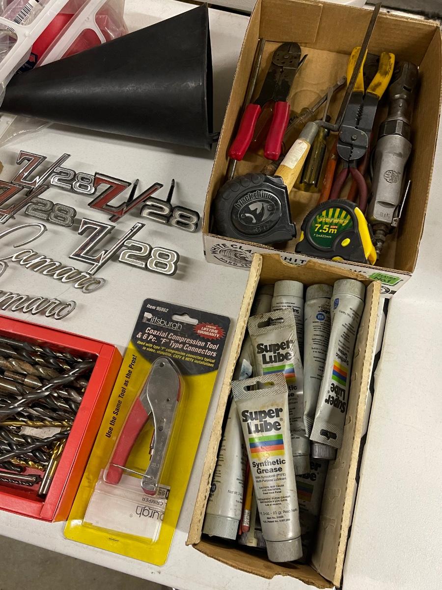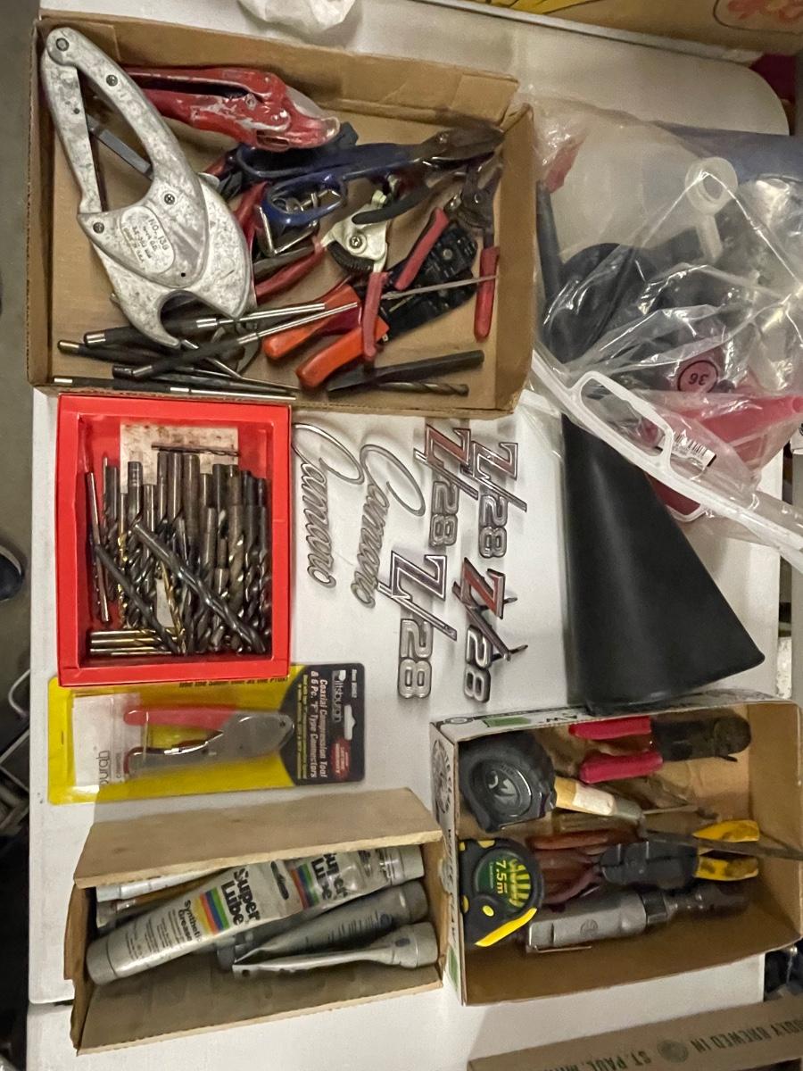 FS37-Hand tools, funnels, drillbits, Z 28/Camaro car decals