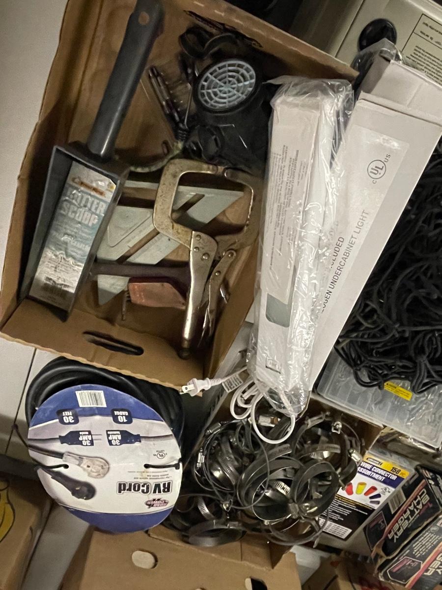 FS45-Undercabinet lights, RV cord, tools, cargo net, gloves, pruner etc.