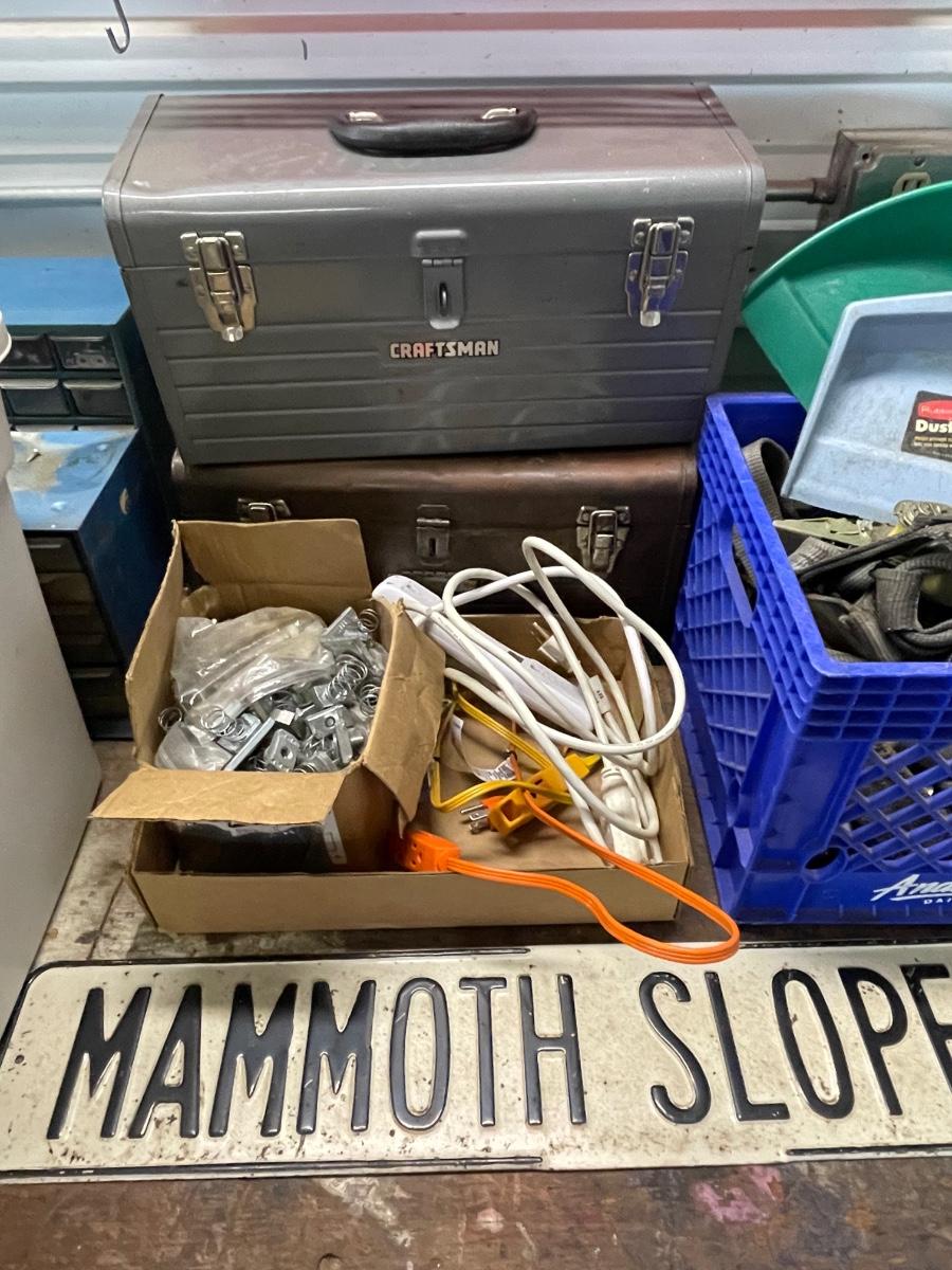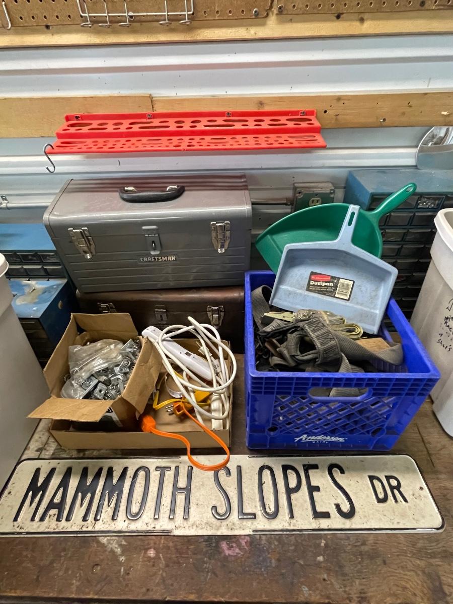 FS84 Empty toolboxes X2, cords, mammoth slope Drive sign, and miscellaneous