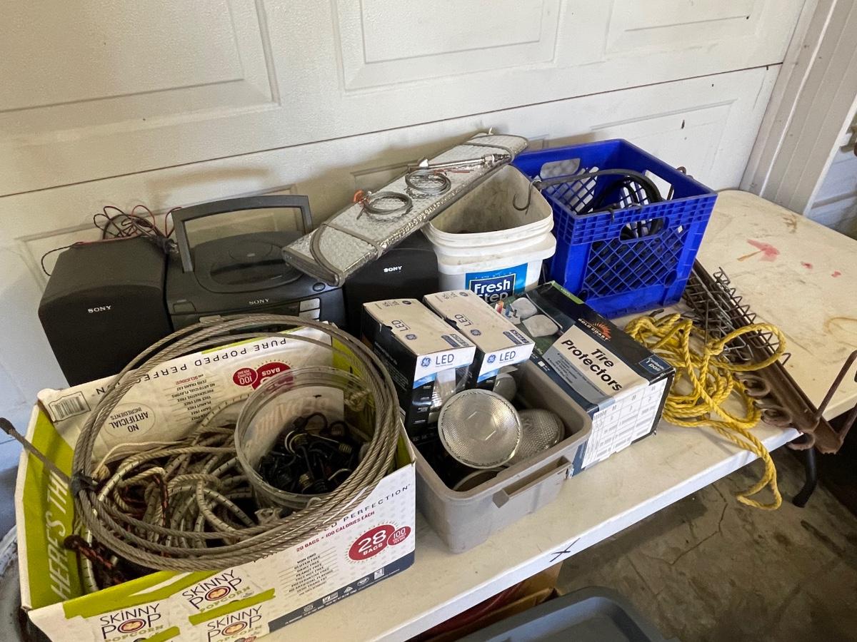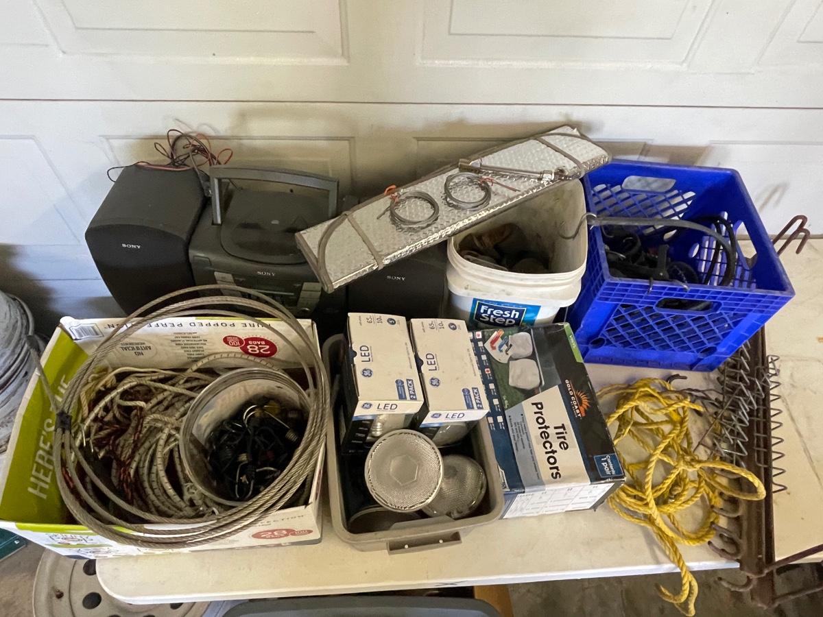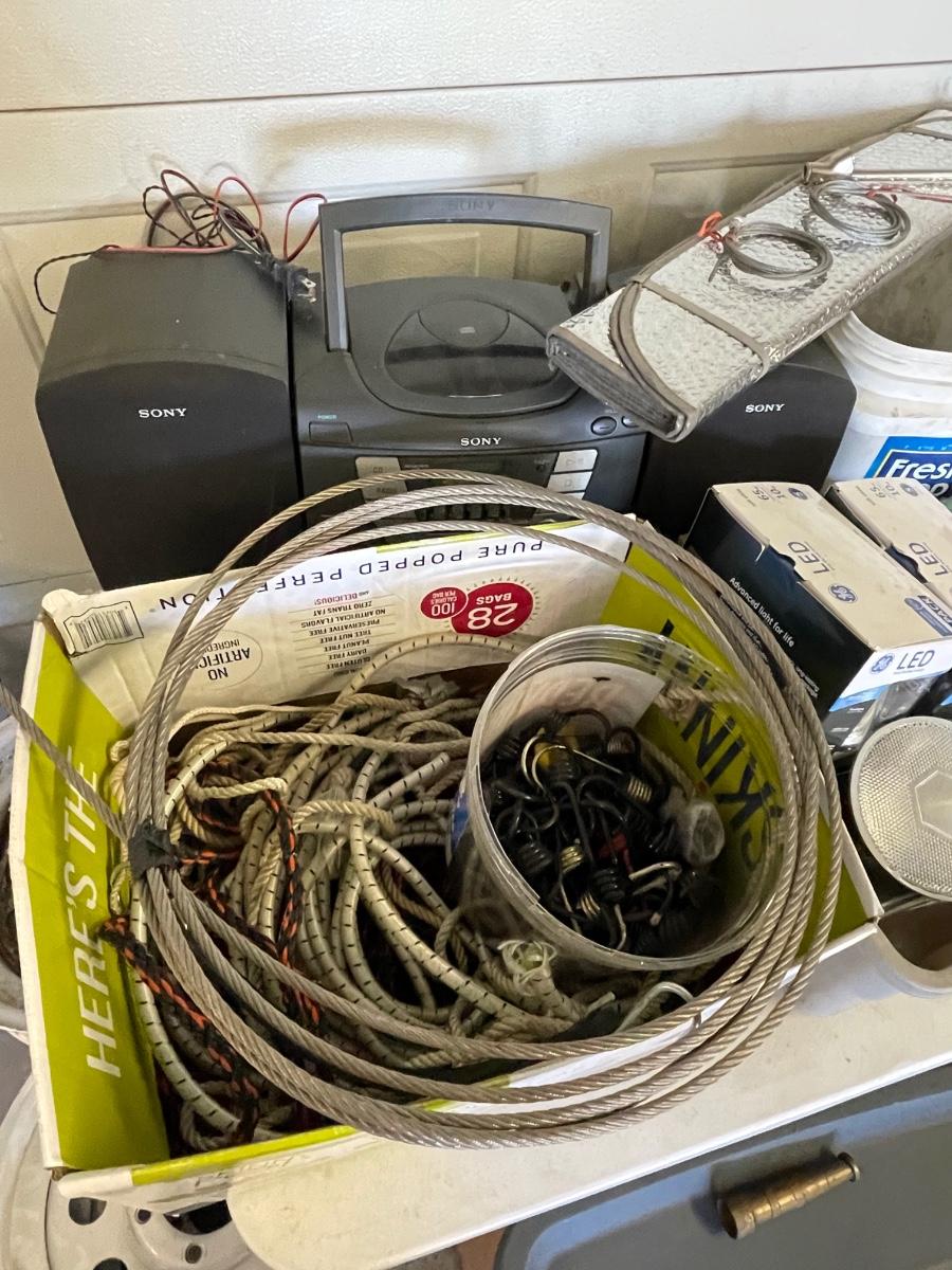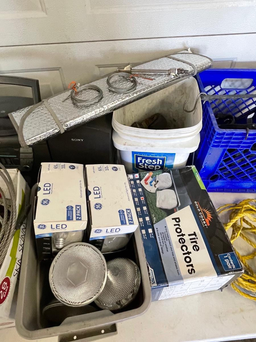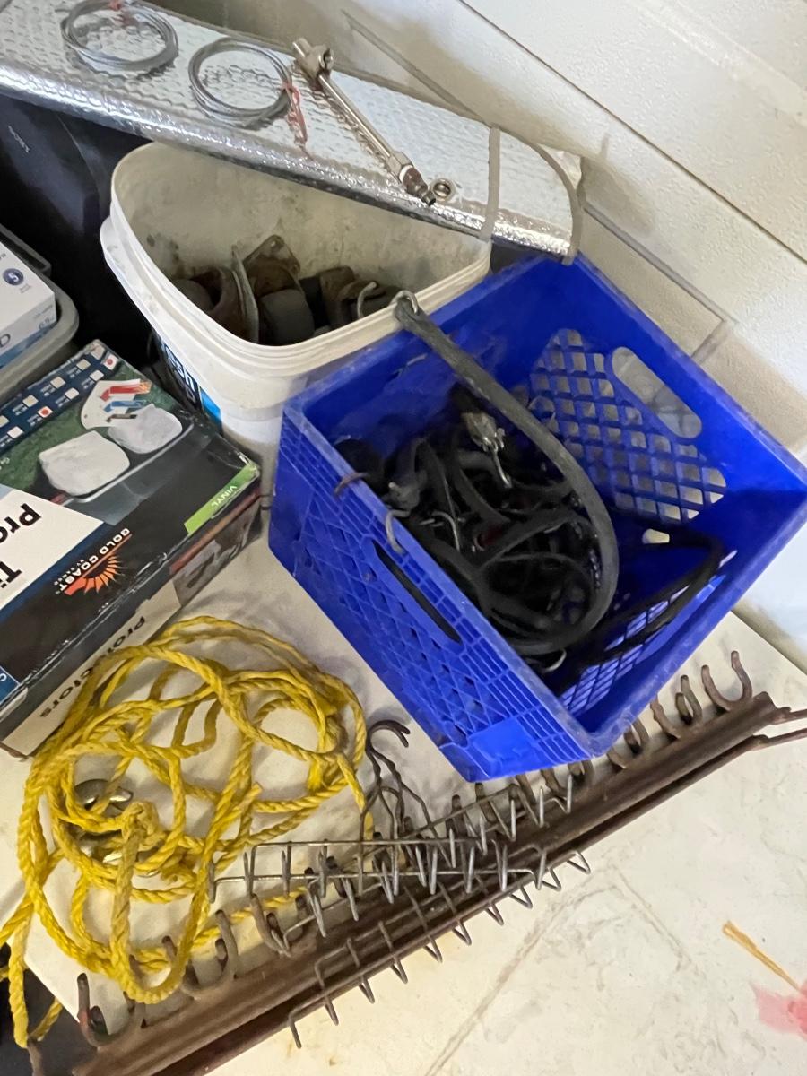 FS90 Bungees, boombox, tire protectors, bucket of casters and miscellaneous