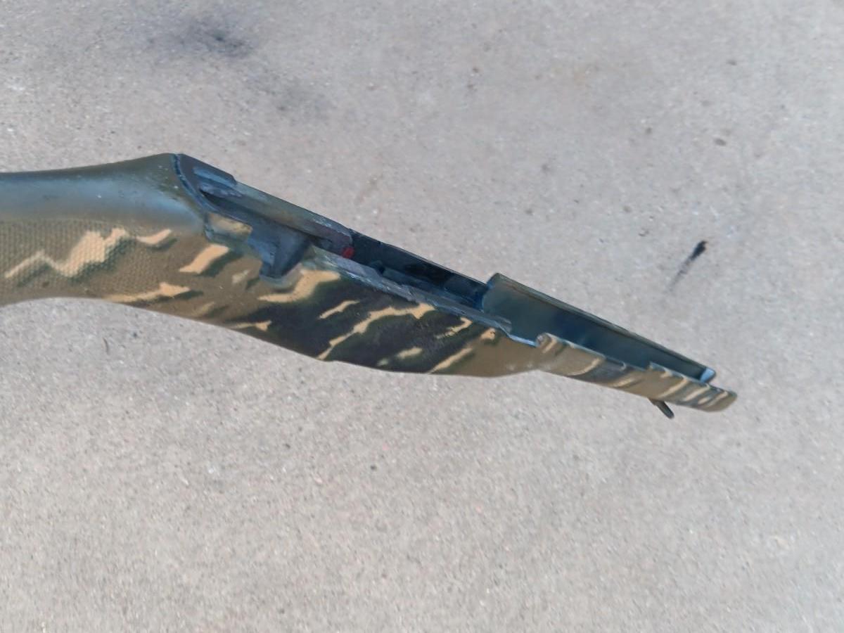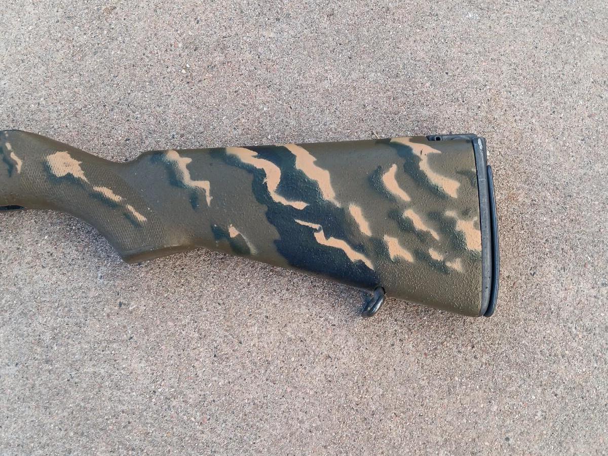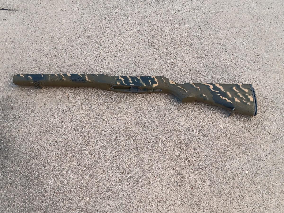 Camouflage rifle stock.