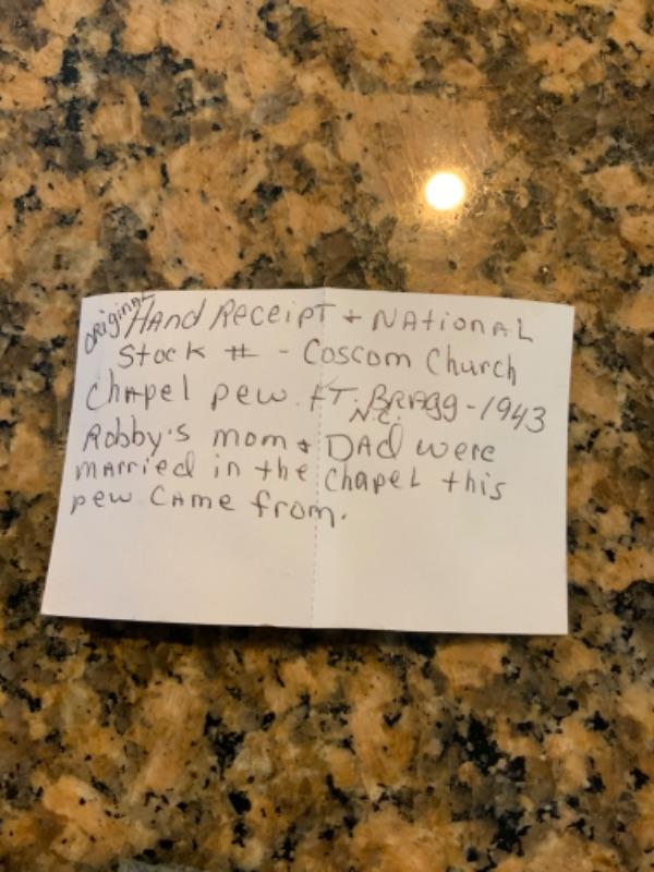 Ft Bragg NC 1943 Church Pew -Solid/Heavy -Lot 2283