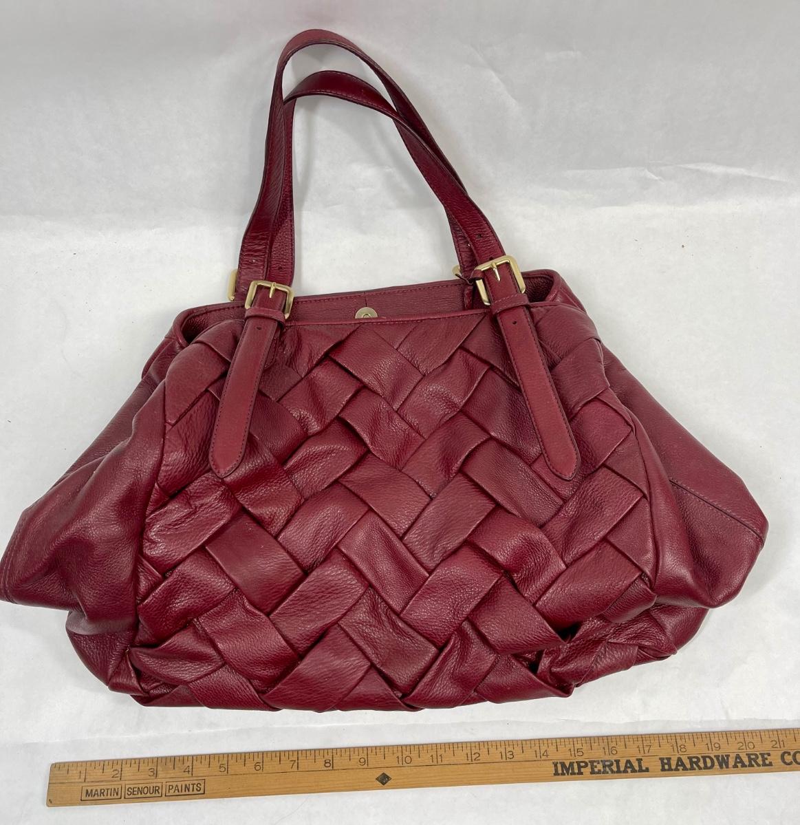 Cole Haan Woven Leather Tote Bag Large Purse Plum color f