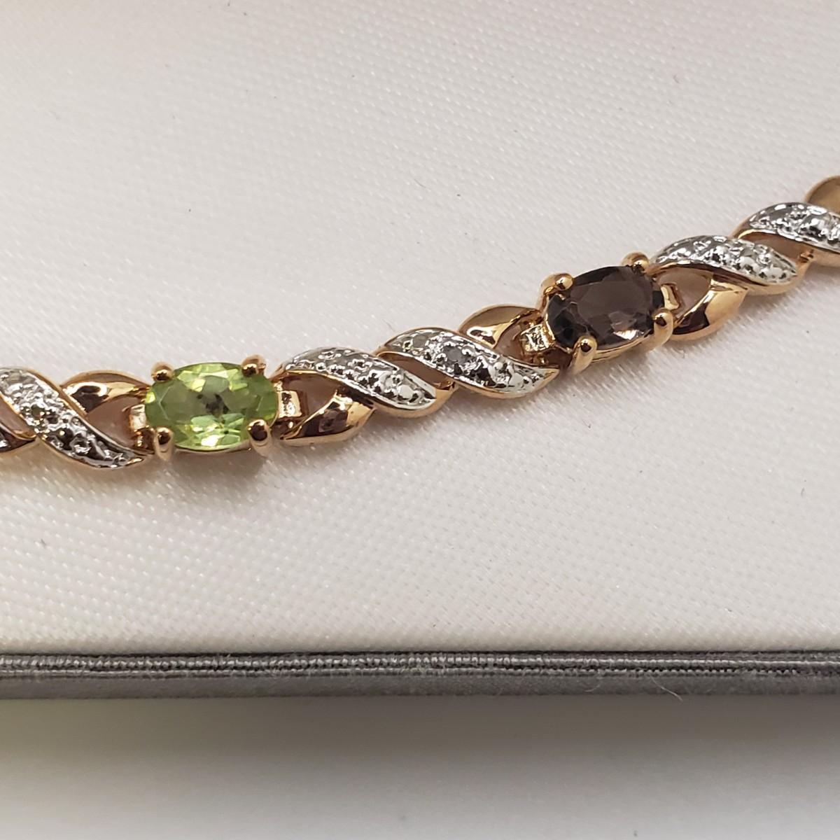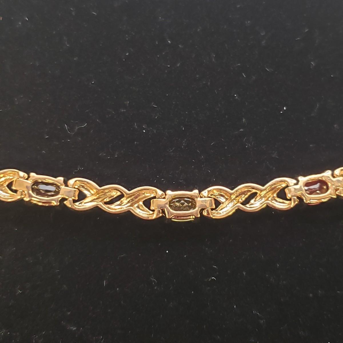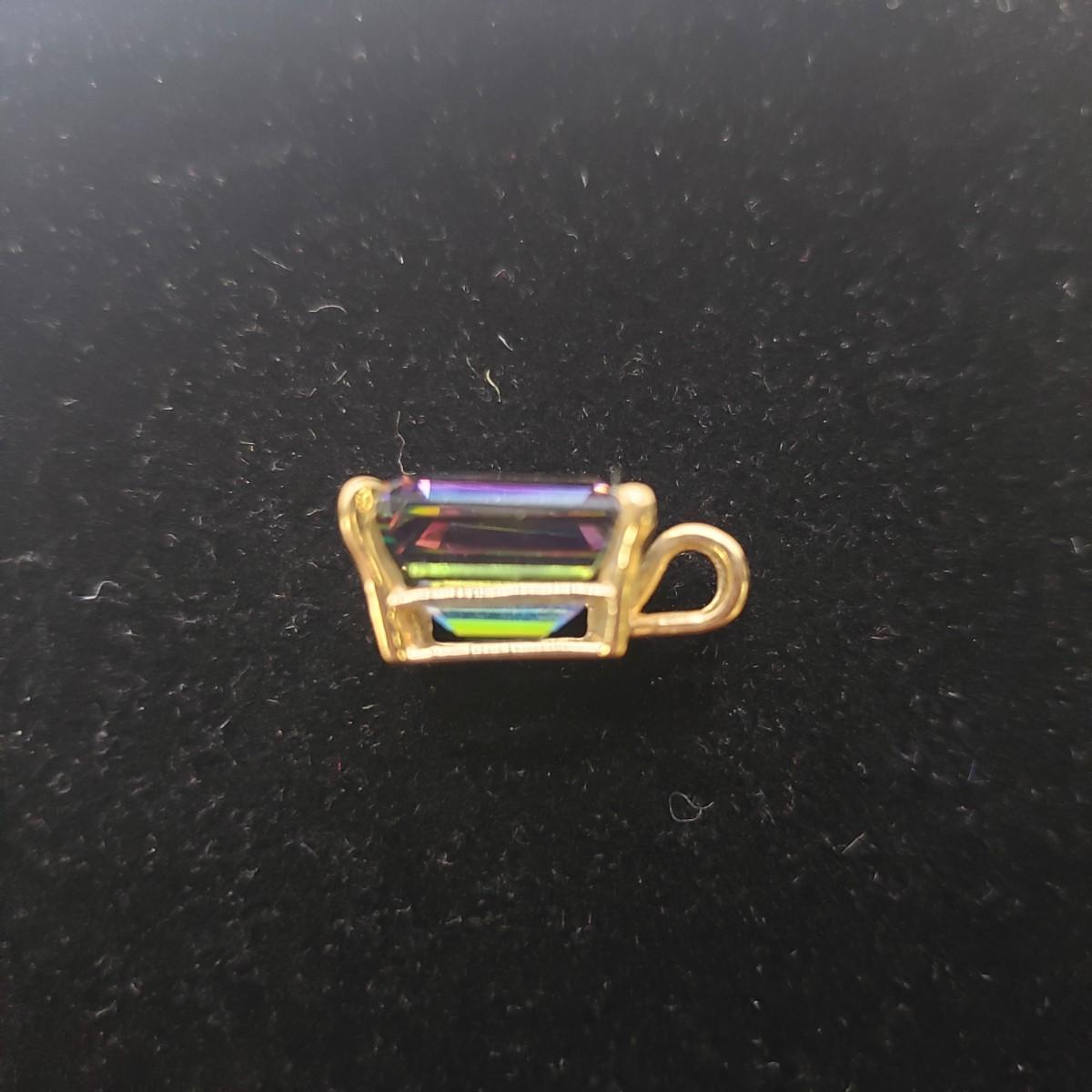 This four piece lot has three identical bracelets. There are four repeating stones in each bracelet. The clasp has two locked down fasteners for extra safety. Each bracelet measures 8". The emerald cut earring and pendant set resemble a Mystic Topaz color. Unfortunately the earrings do not come with backings.