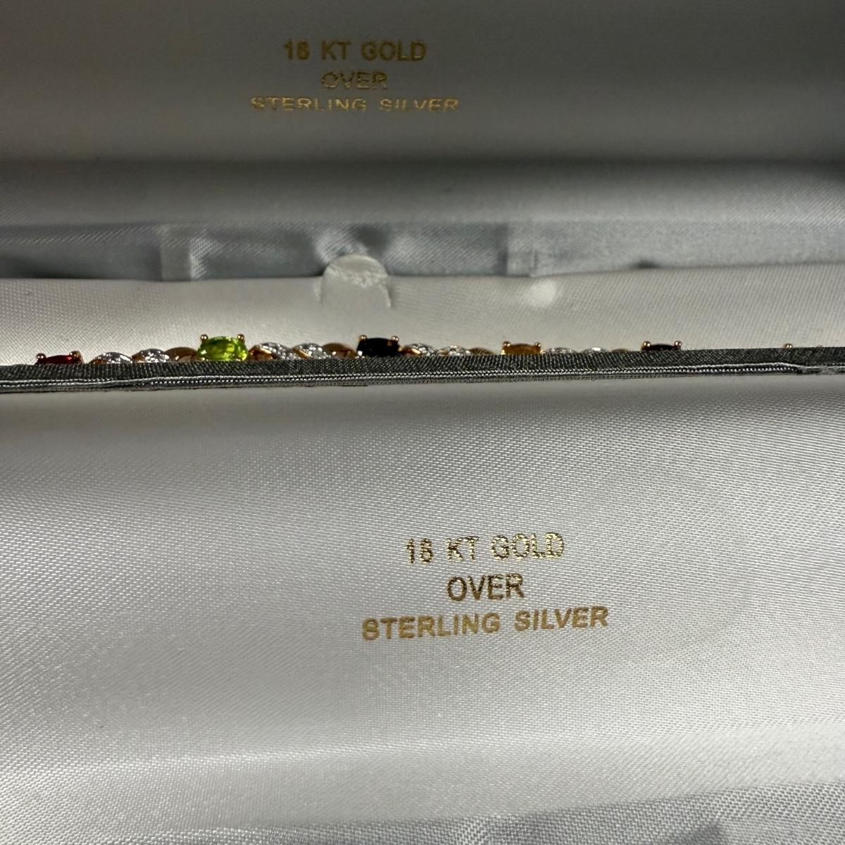 Three Identical 18K over Sterling Stone Bracelets & a Set of Earrings & Pendant (ST-KD)