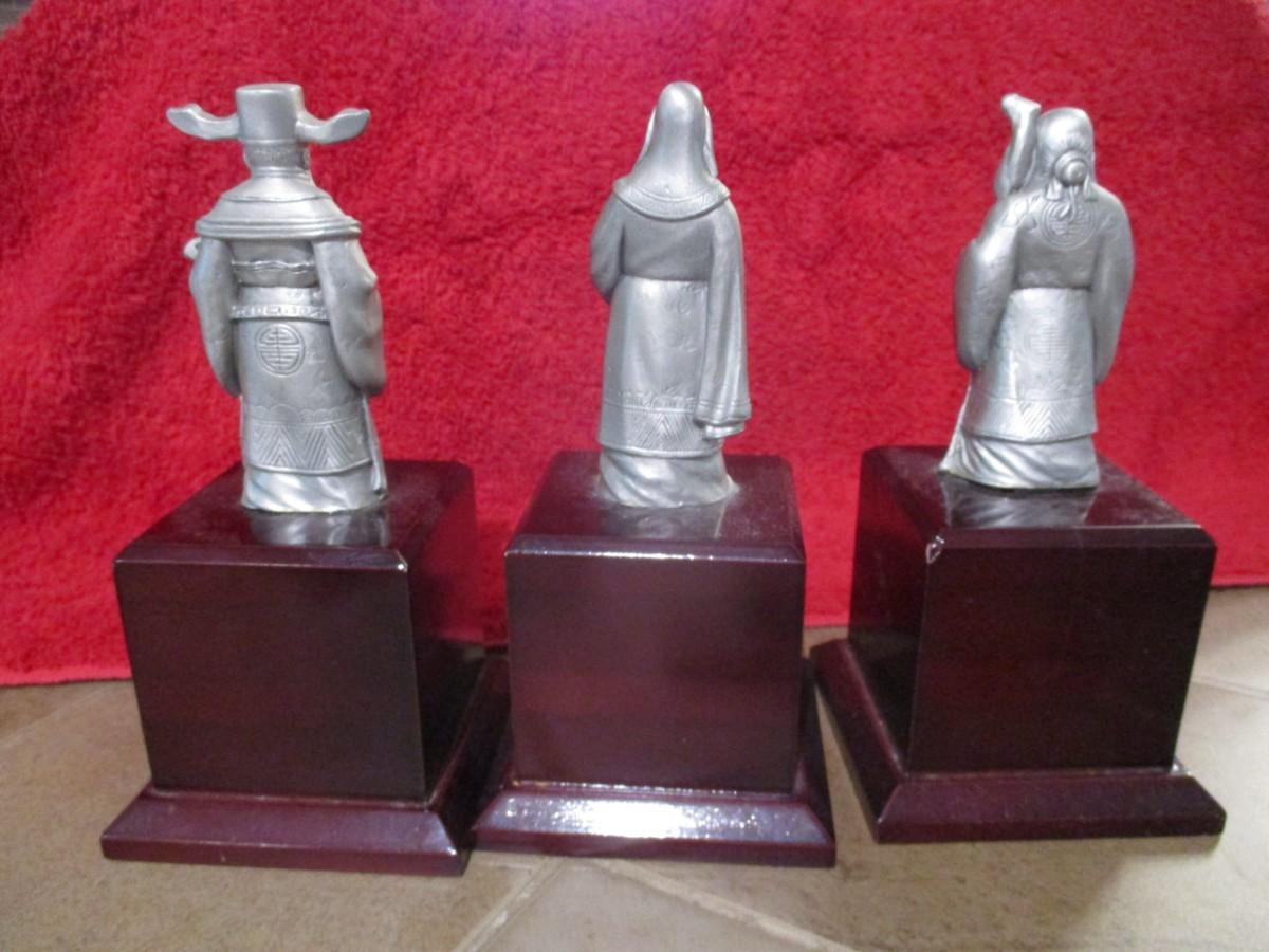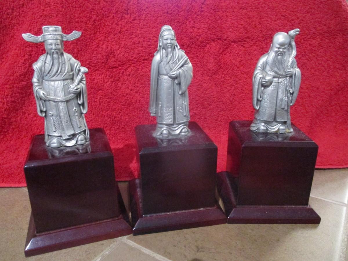 Fu Lu Shou Trio Bronze Brass Figures Chinese Immortal Gods - D