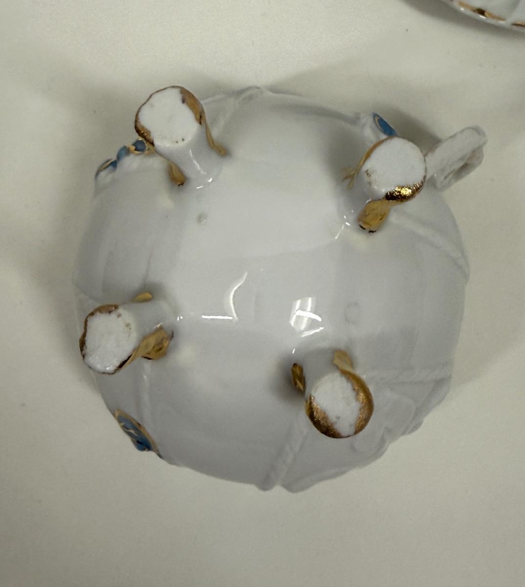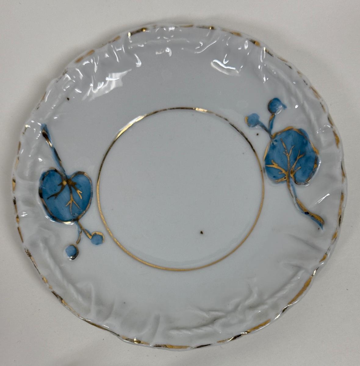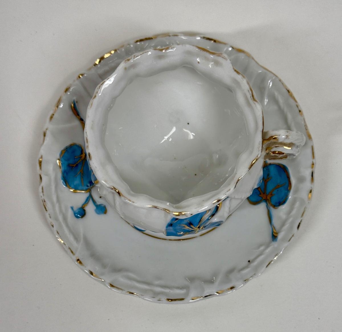 Vintage Demitasse Cup & Saucer blue flowers, gold leaf, three footed cup with rope handle