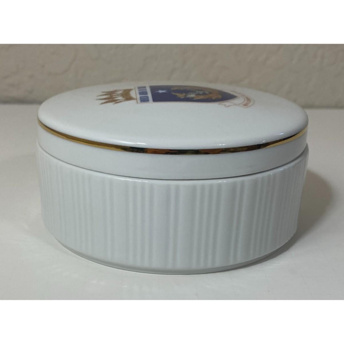 Obtienes una taza Pillan T-35 que mide aproximadamente 3 7/8"" de alto. Sus diámetros son 3,25"" en el borde y 2 3/8"" en la base. También obtienes un tarro de dulces que mide aproximadamente 1,75"" de alto con un 4"" de diámetro. Ambos artículos están en buenas condiciones, con un desgaste superficial menor y sin astillas, muescas ni grietas. Vea todas las imágenes.
