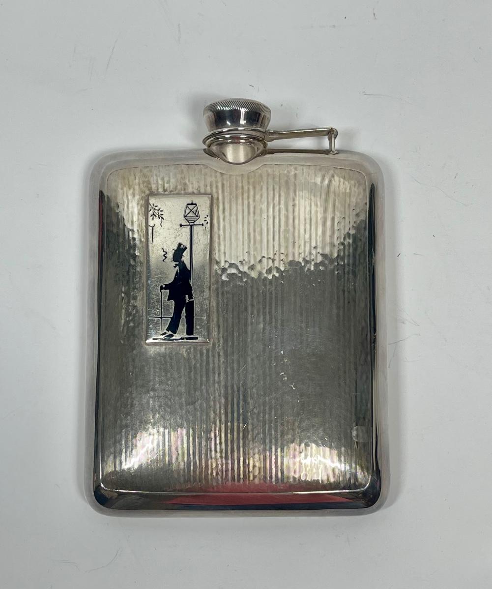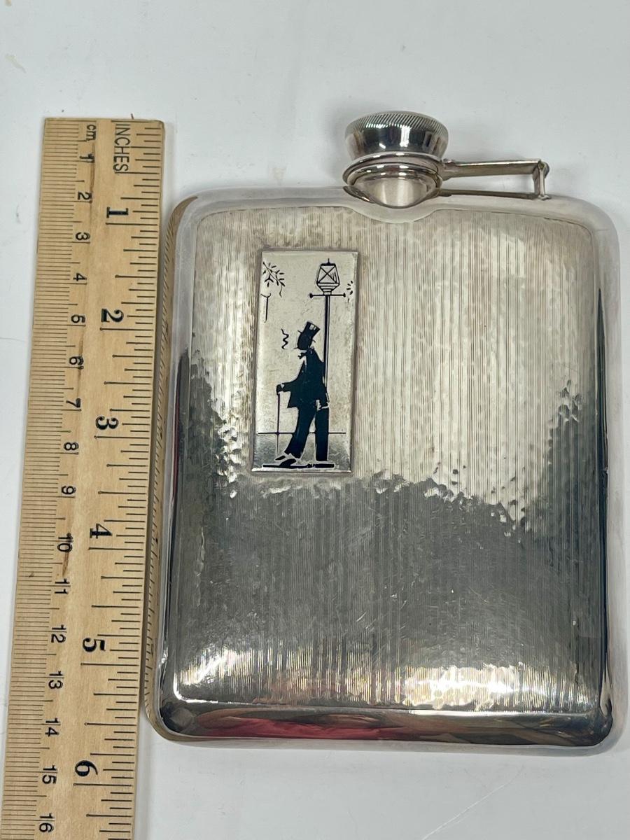 Antique Evan's Nickel Silver Hip Flask Decanter Art Deco
