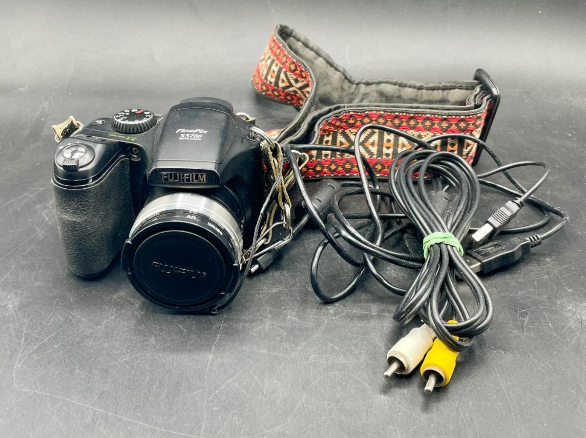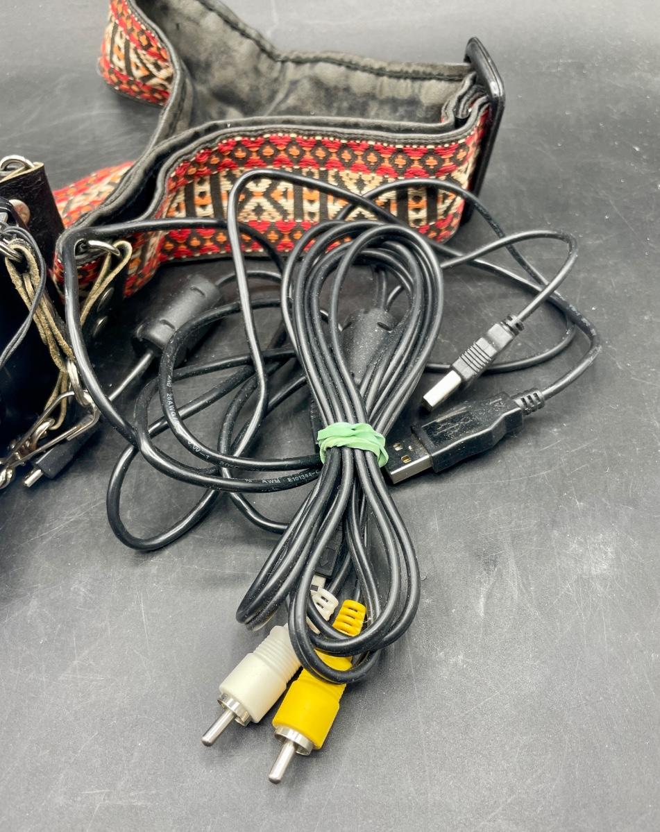 Good working condition, tested with 4 fresh AA batteries and all functions worked as expected. Includes neck strap and an assortment of A/V cords and cables.