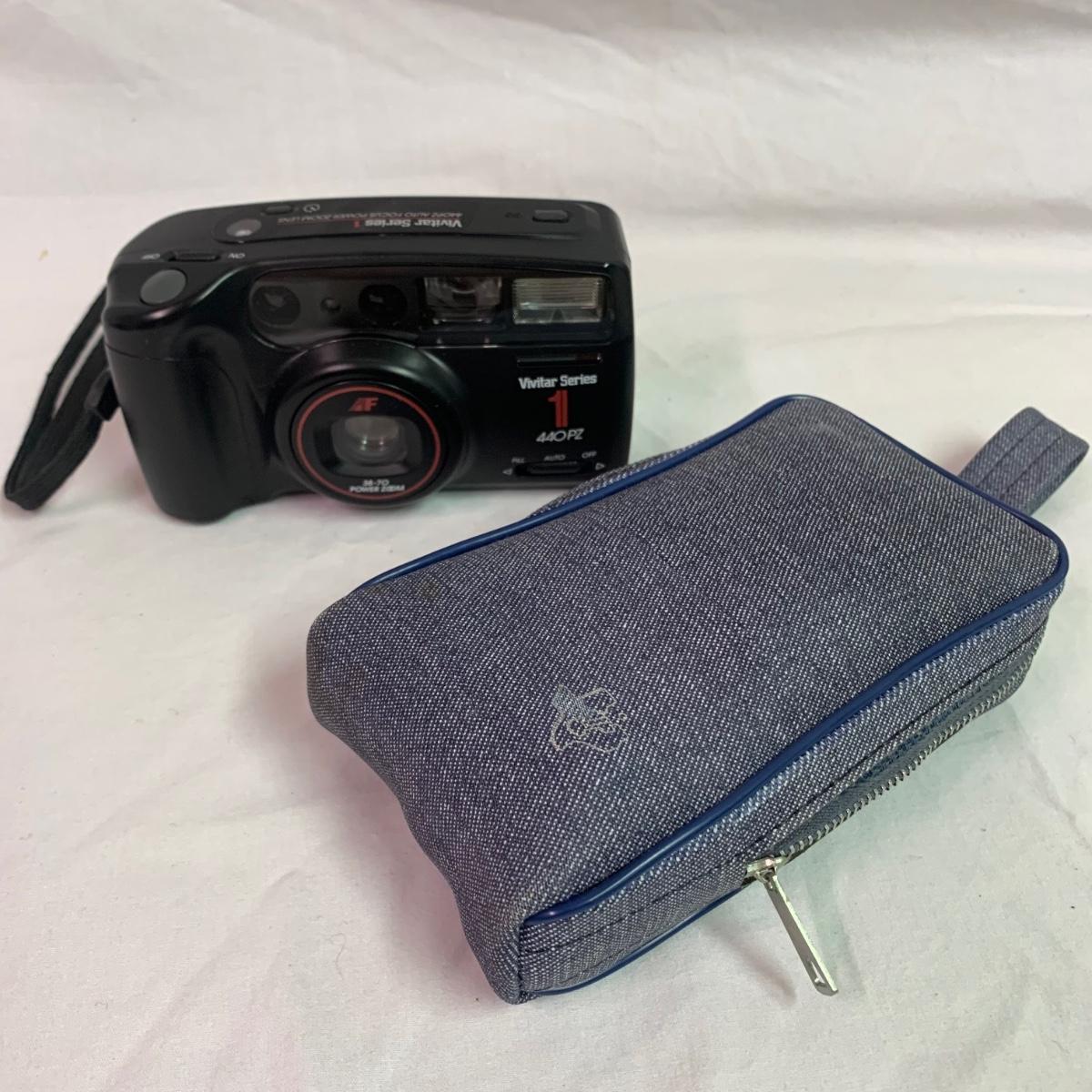 This lot includes Fujica Compact 35 film camera with case, Vivitar 440P2 film camera with case, and Canon PowerShot G9 with case and box. All items have been used. Each camera has a case, but please note that cases provided are not the original. Items were unable to be tested as they either contained uncharged batteries or none at all. Please see photos for more details. Vivitar camera measures approximately 5.25” x 2” x 3” H. Shipping available.
