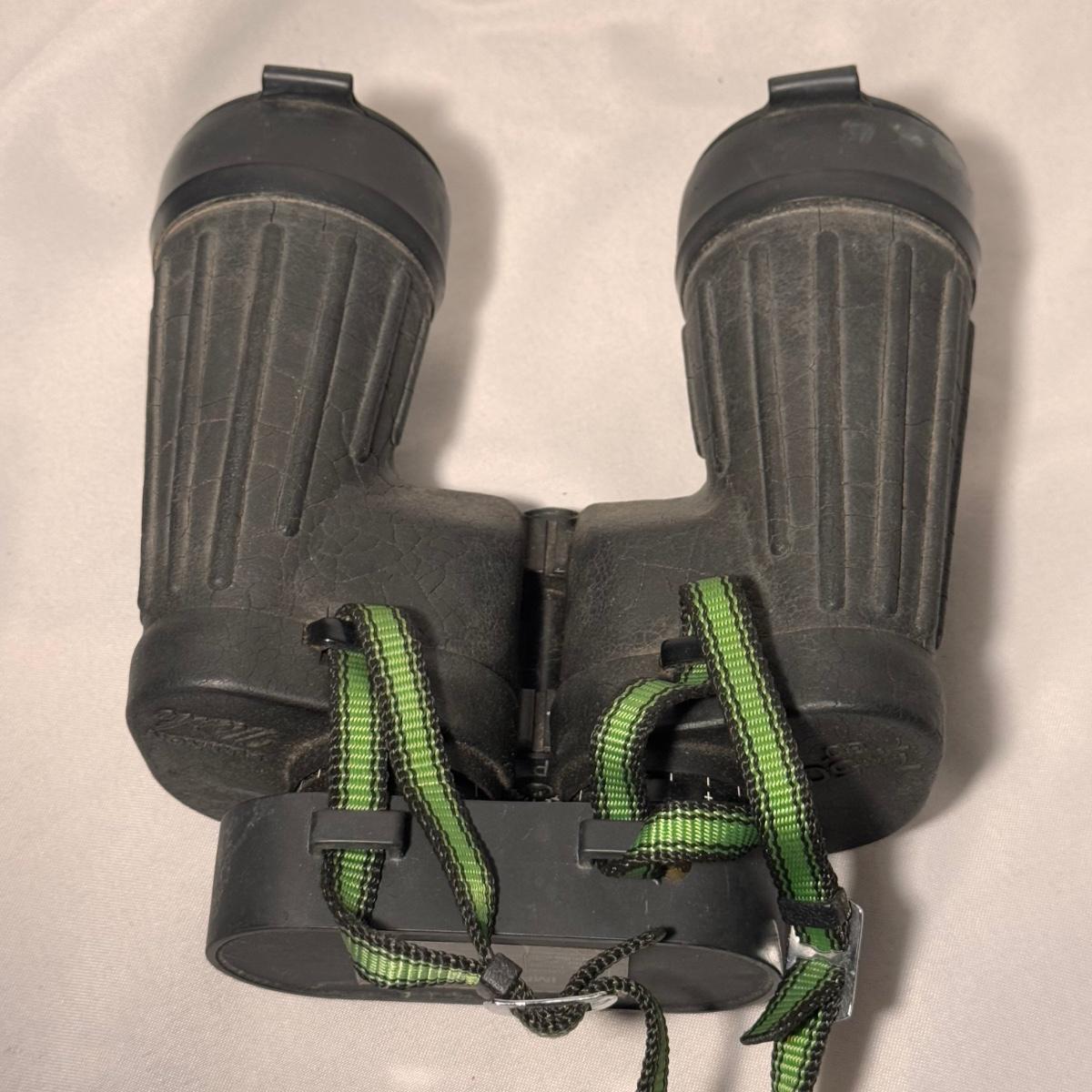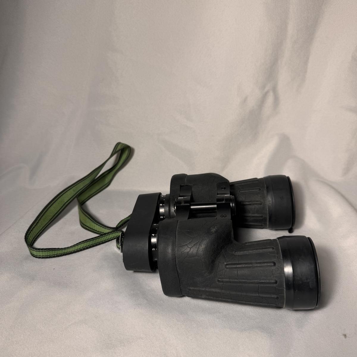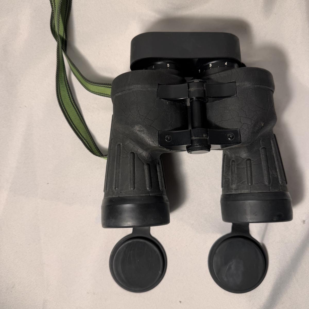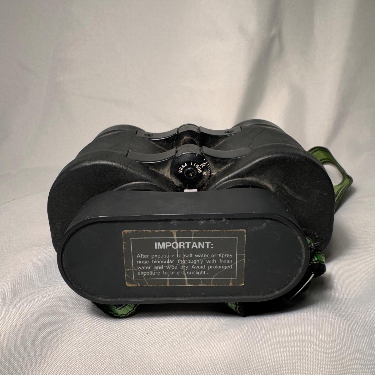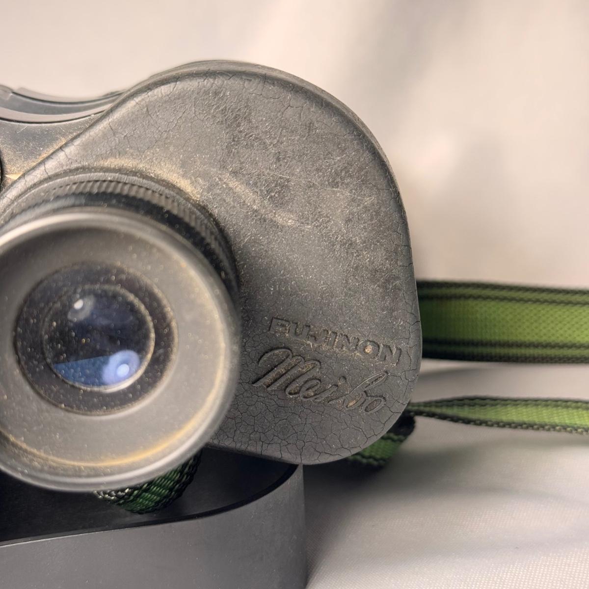 Lot includes one set of Fujinon Meibo binoculars. They have a few signs of wear, mostly being dirt and grime. It appears to be removable. The binoculars measure 6.5” x 7.5” x 3”H. Shipping available.